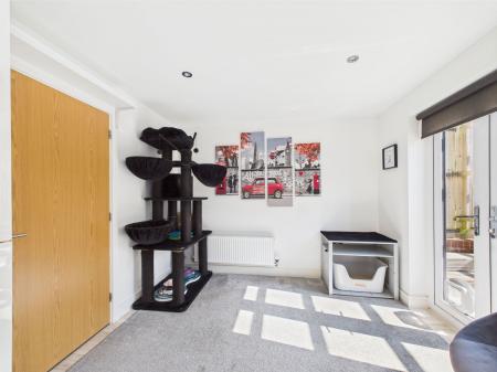 A stylish uPVC double glazed composite front door opening into a warm and inviting entrance hallway. This welcoming space provides access to the downstairs cloakroom, ground floor living areas and features a gas central heating radiator.