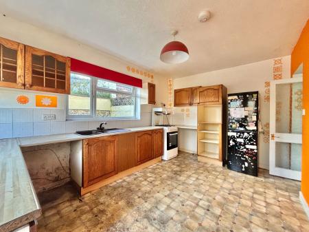 KITCHEN – 4.6m x 3.03m (15'1" x 9'11") A generously proportioned kitchen fitted with a range of wall, base and drawer units topped with roll edged work surfaces. Features include a 1 1/2 bowl sink with drainer, gas cooker and space and plumbing for both a washing machine and fridge freezer. The room benefits from a boiler, double aspect UPVC double glazed windows, a UPVC double glazed door providing side access to the property, and a gas central heated radiator.