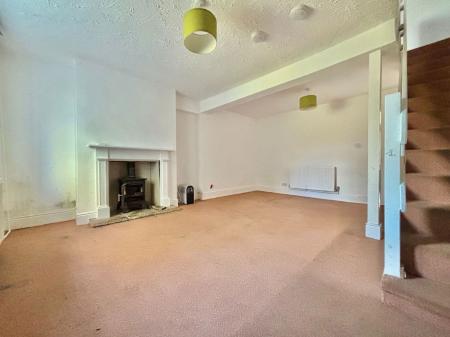 LIVING ROOM – 5.83m x 4.51m (19'1" x 14'9") A UPVC front door opens into an impressively spacious lounge/diner, offering ample room for both relaxation and entertaining. The space features a charming log burning stove, staircase rising to the first floor, UPVC double glazed window, TV and internet points and a gas central heated radiator.