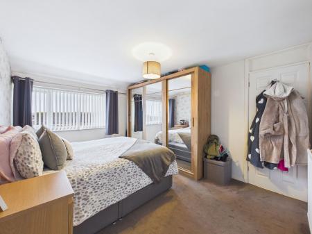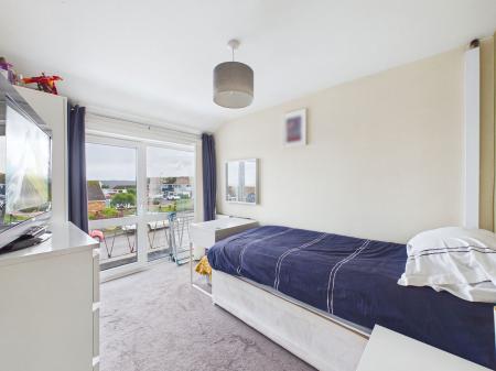 BEDROOM ONE A wonderfully large master bedroom to the front of the property, offering excellent space and sea glimpses. Features include deep wardrobes, a uPVC double glazed window and a gas central heating radiator.