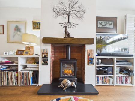 LIVING ROOM A beautifully bright and spacious living room offering ample space for a variety of furnishings. The room features a stylish electric fireplace and impressive floor to ceiling windows overlooking the front garden complete with shutters. Additional features include a TV point and two gas central heating radiators.