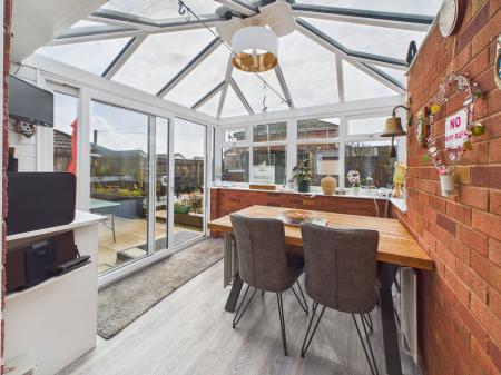 CONSERVATORY A sun filled conservatory overlooking the south facing rear garden, currently utilised as a dining area but equally suitable as an additional sitting room or relaxation space. The room benefits from double aspect uPVC double glazing, sliding patio doors opening onto the garden, a storage cupboard housing the washer/dryer and electrical points. Portable oil filled electric radiators used over the winter.