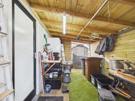 REAR GARDEN The property enjoys a beautifully sunny, south facing rear garden. A paved patio provides an ideal space for alfresco dining, while the remainder of the garden is mainly laid with decorative pebble stones and complemented by raised flower beds featuring a wide variety of mature shrubs and plants. A side garden offers further space with decorative stones, a vegetable patch, fruit trees and raised beds. The garden also benefits from a covered workshop with power, lighting and storage space, as well as an outdoor kitchen area, also equipped with power and lighting.