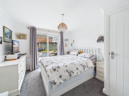 BEDROOM TWO A well proportioned double bedroom overlooking the sunny rear garden. The room benefits from uPVC double glazed sliding patio doors opening directly onto the garden and a gas central heating radiator.