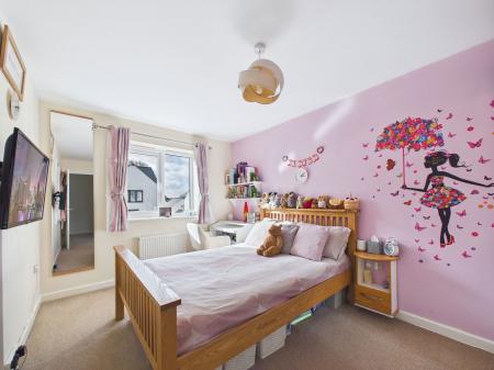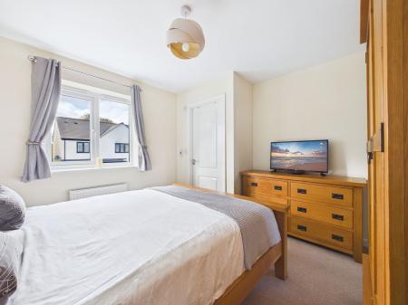 BEDROOM TWO A comfortable double bedroom with radiator and UPVC double-glazed window. A large built-in cupboard over the stairs provides useful storage space.