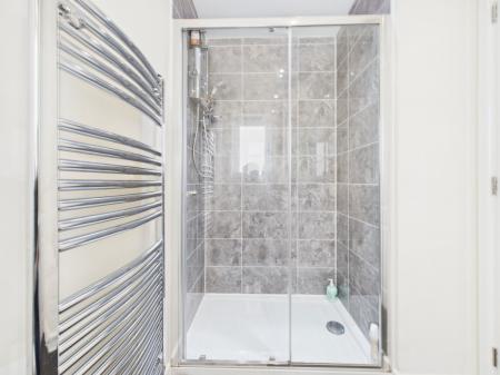 EN-SUITE Stylishly appointed with a walk in double shower enclosure, low level WC, pedestal wash basin, contemporary tiling, obscure uPVC double glazed window and a chrome heated towel rail.