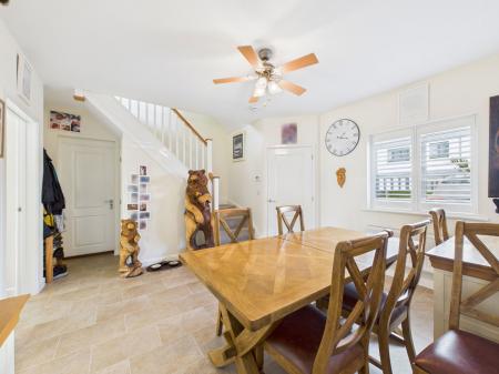 DINING ROOM A generously proportioned, light filled dining room ideal for family living and entertaining. Benefits include direct access to both the living room and kitchen, a deep fitted storage cupboard, integral door to the garage, uPVC double glazed window and a central heating radiator.
