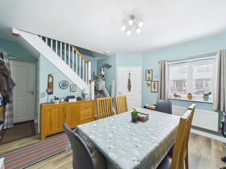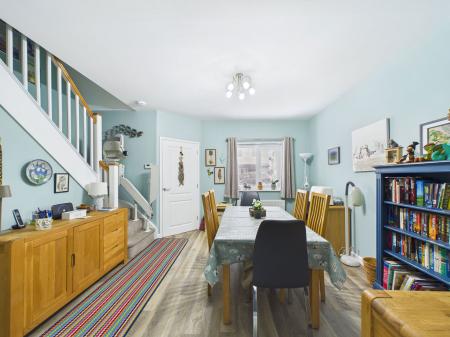 DINING ROOM A well proportioned dining room ideal for both everyday family living and entertaining. The room offers access to the living room and kitchen, benefits from a deep built in storage cupboard and an internal door leading to the garage. Further features include an internet point, uPVC double glazed window and central heating radiator.