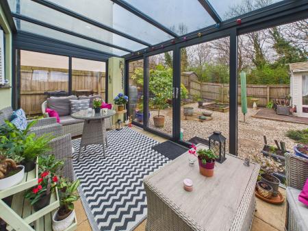 GARDEN ROOM A beautifully light filled garden room overlooking the rear garden, providing an ideal space for relaxation and entertaining. The room benefits from triple aspect uPVC double glazing, a glazed roof allowing natural light to flood the space and sliding patio doors opening onto the garden.