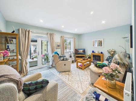LIVING ROOM A spacious and comfortable living room enjoying views over the rear garden and garden room. The room offers ample space for furnishings and features a TV point, two central heating radiators, a uPVC double glazed window and French doors opening into the garden room.