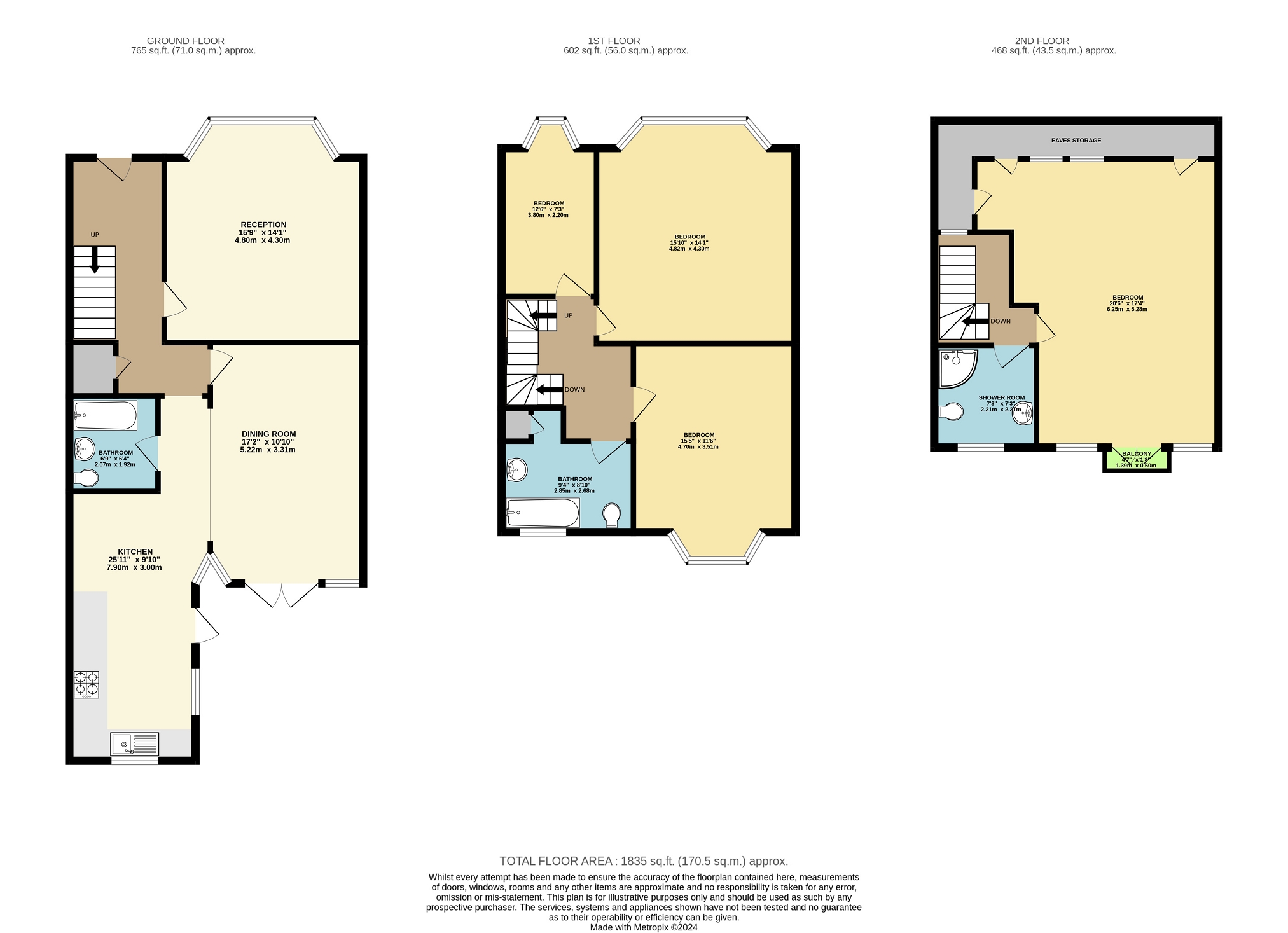 There are three bedrooms and family bathroom to the first floor, plus a further one good sized bedroom and shower room to the loft, with Juliet balcony and Velux windows to front aspect.