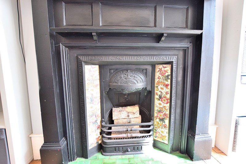 BEDROOM 1: Carpet. Timber bay window to front aspect with bespoke shutters. Fireplace with timber surround and cast iron fire. Radiator.