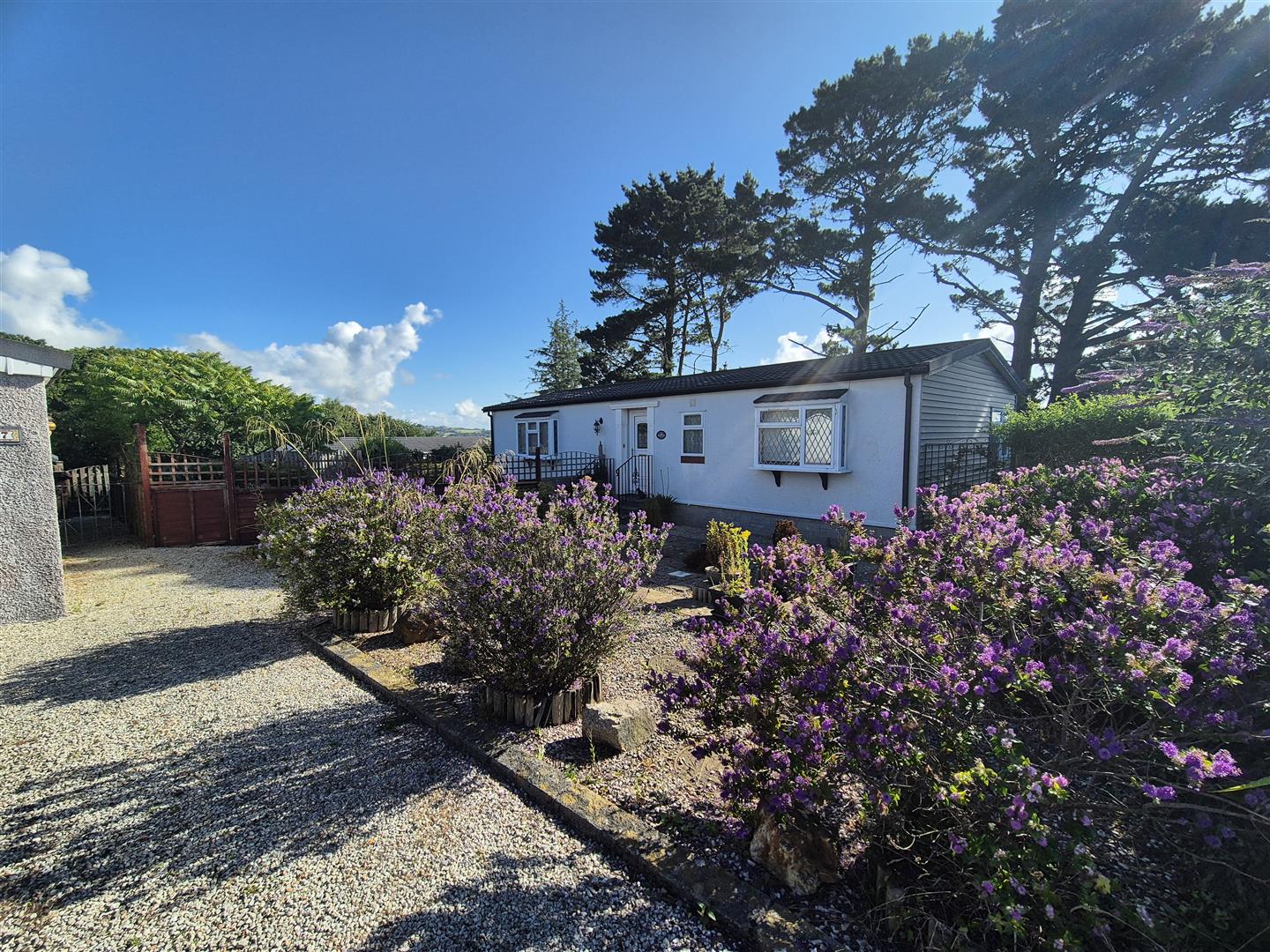 A RARE OPPORTUNITY TO PURCHASE A TWO BEDROOM PARK HOME ON A GENEROUS SIZE PLOT. GARDENS TO THE FRONT, SIDE AND REAR, GARAGE, OFF ROAD PARKING SPACE AND GARDEN.