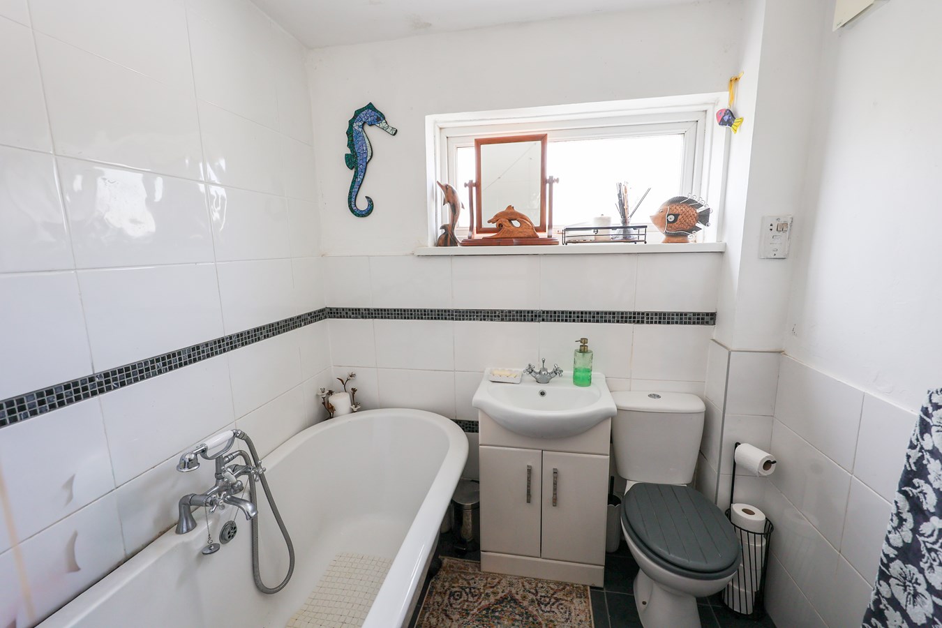 5' 7" x 6' 4" (1.70m x 1.93m) Window to the rear, fitted with a modern suite comprising of a claw foot roll top bath fitted with a mixer tap and shower, low level W.C. wash hand basin.