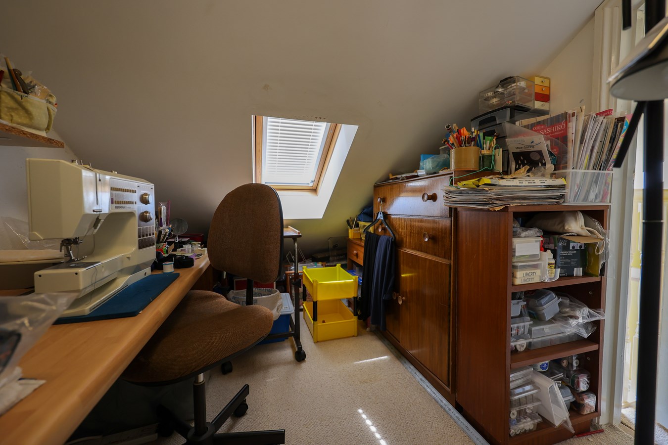 3.4m x 3.55m (11' 2" x 11' 8") This versatile space features a rear-facing window and an internal opaque glazed window into the bedroom. A spiral staircase offers access to the attic room above, while a separate door leads into a cosy study?ideal for work, reading, or quiet retreat.