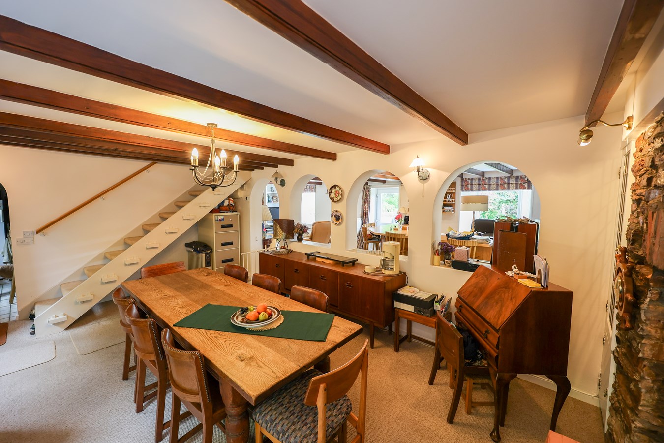 This captivating character cottage offers a wealth of space and charm, beginning with an impressive entrance hall and minstrel gallery—a striking architectural feature rarely seen. The extensive lounge spans the full width of the property, boasting exposed beams and granite fireplaces at either end, while the elegant dining room with arched pillars and third fireplace flows beautifully into the modern kitchen. With four bedrooms, a family bathroom, utility room, cloakroom, and a versatile attic room, there’s ample space for modern living. A cosy study also links to the gallery, adding a quiet corner for work or reading.