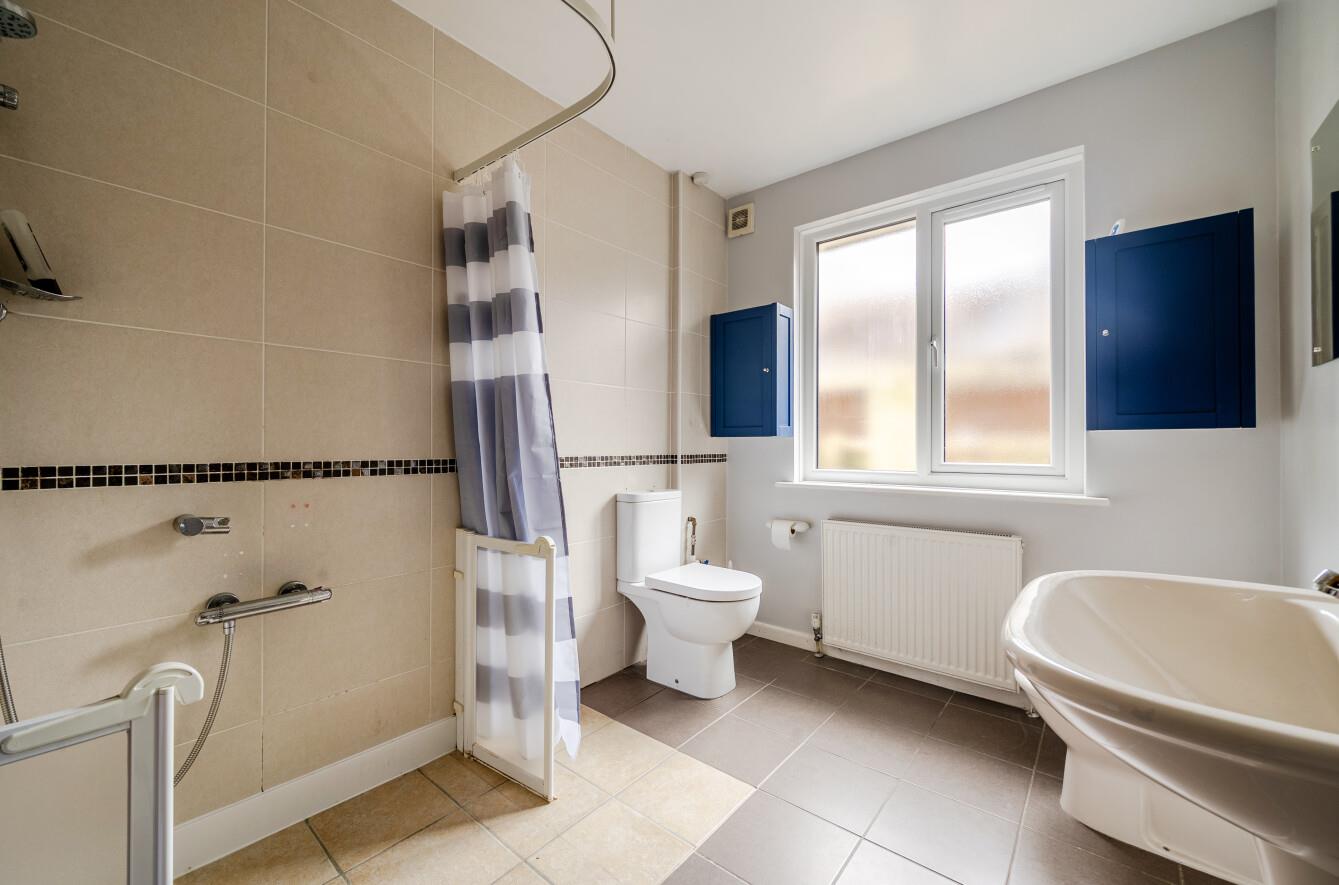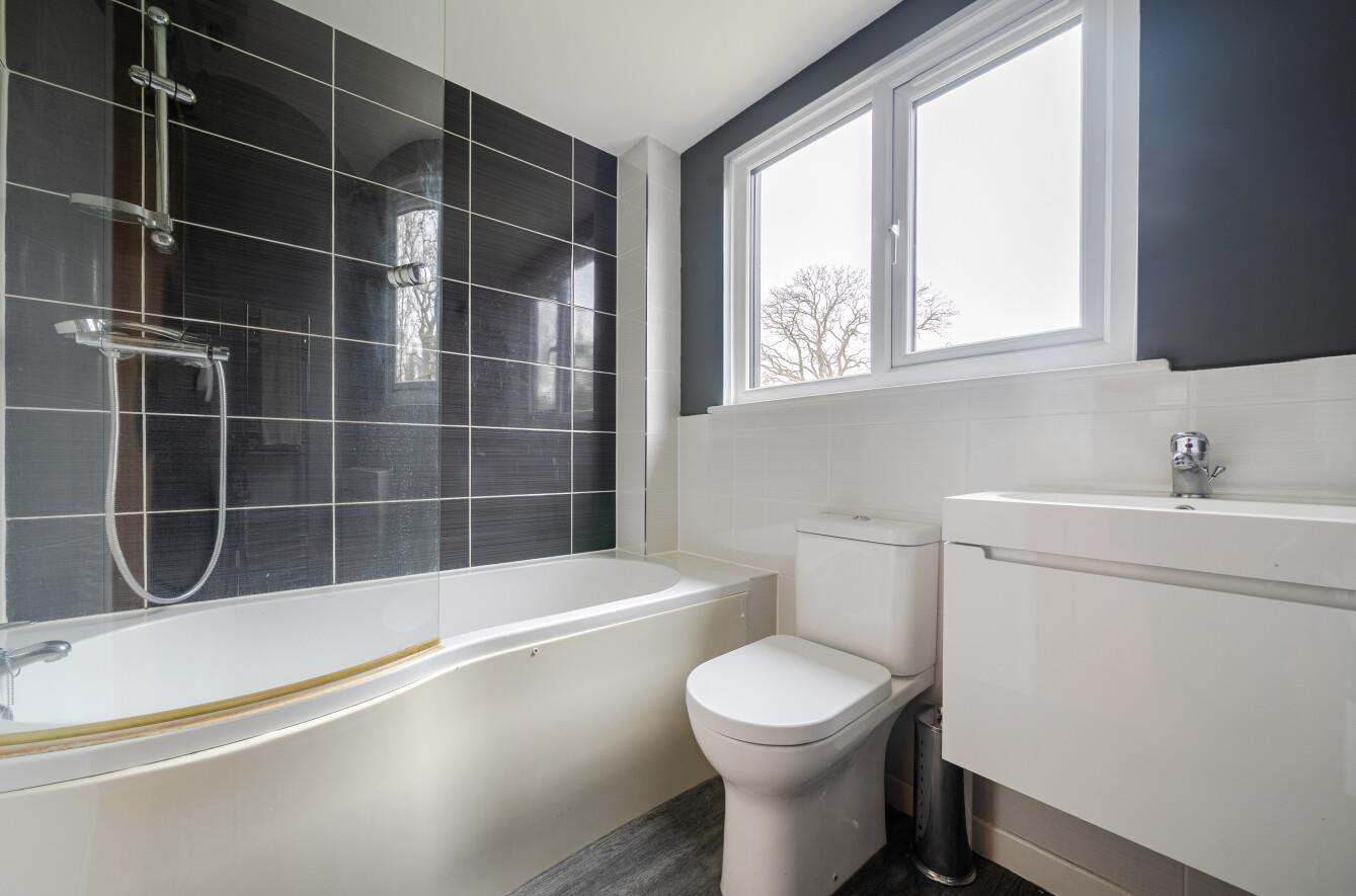 Bathroom: - Comprising bath with shower over, wash hand basin withdrawn under, WC.