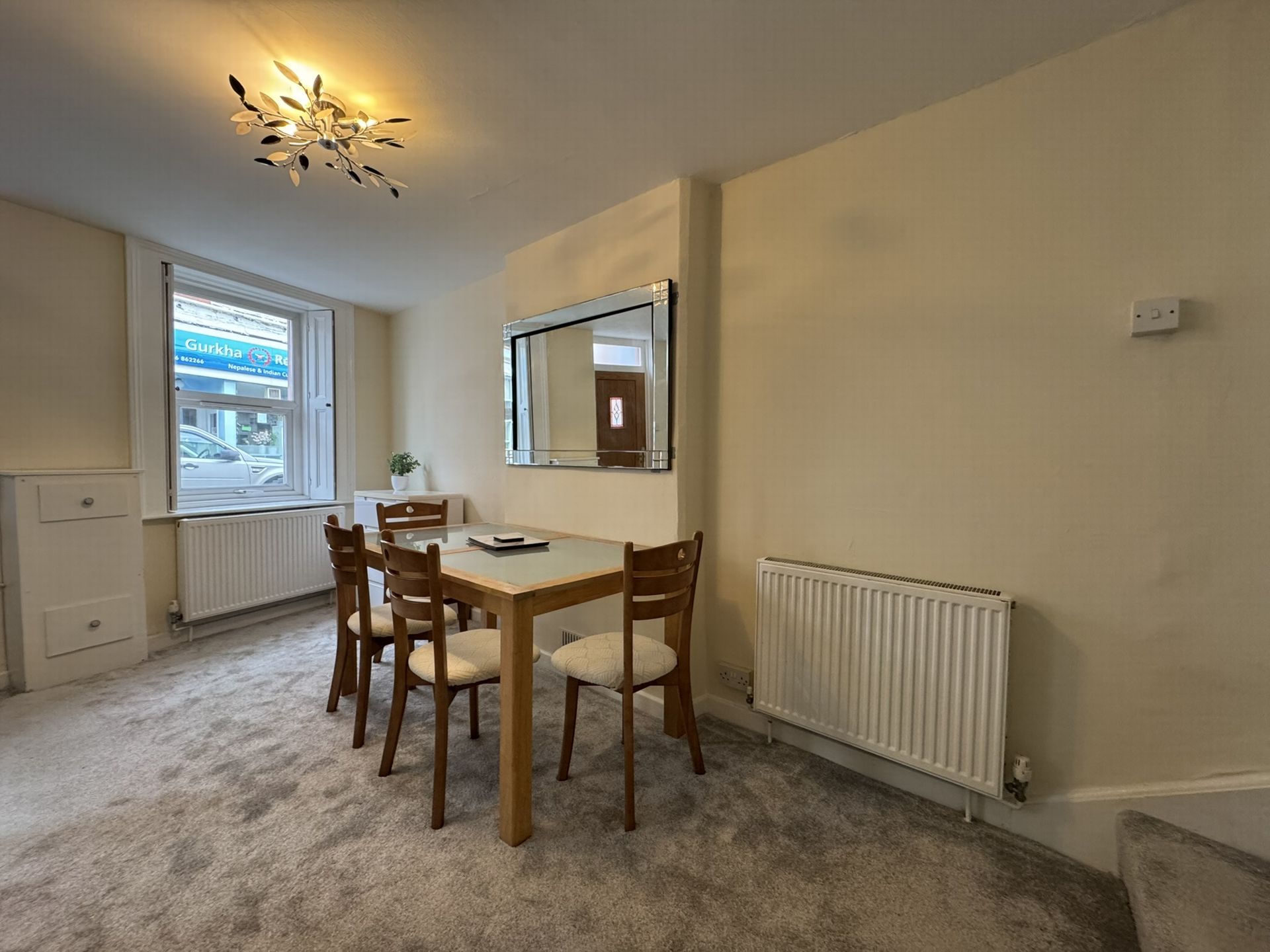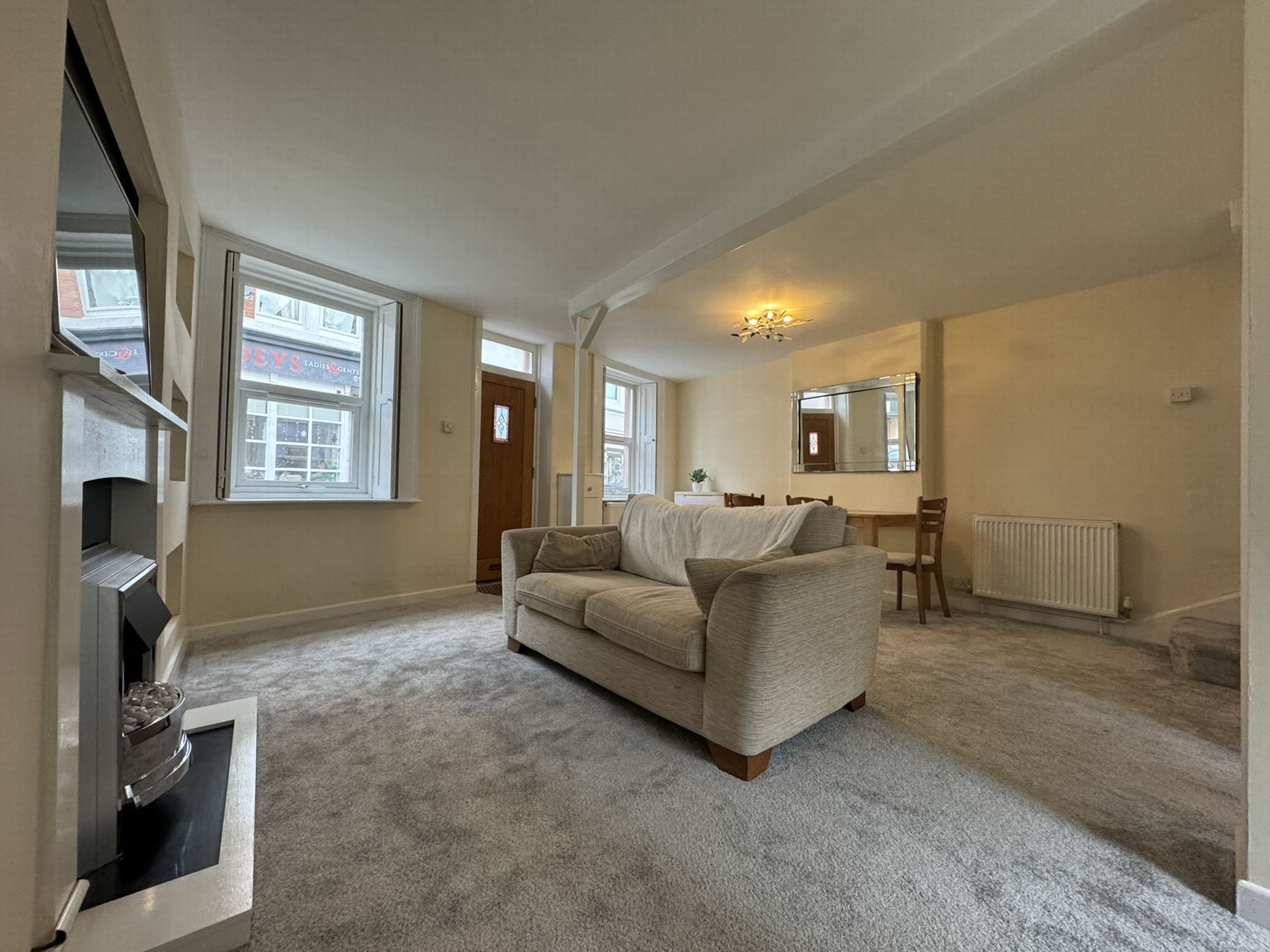 LIVING ROOM: 5.10m x 4.80m (16'9" x 15'9"), A double aspect room with two uPVC double glazed windows to front aspect and one overlooking rear courtyard, inset gas fire in fireplace, radiator, TV point and stairs to first floor. Open archway to: