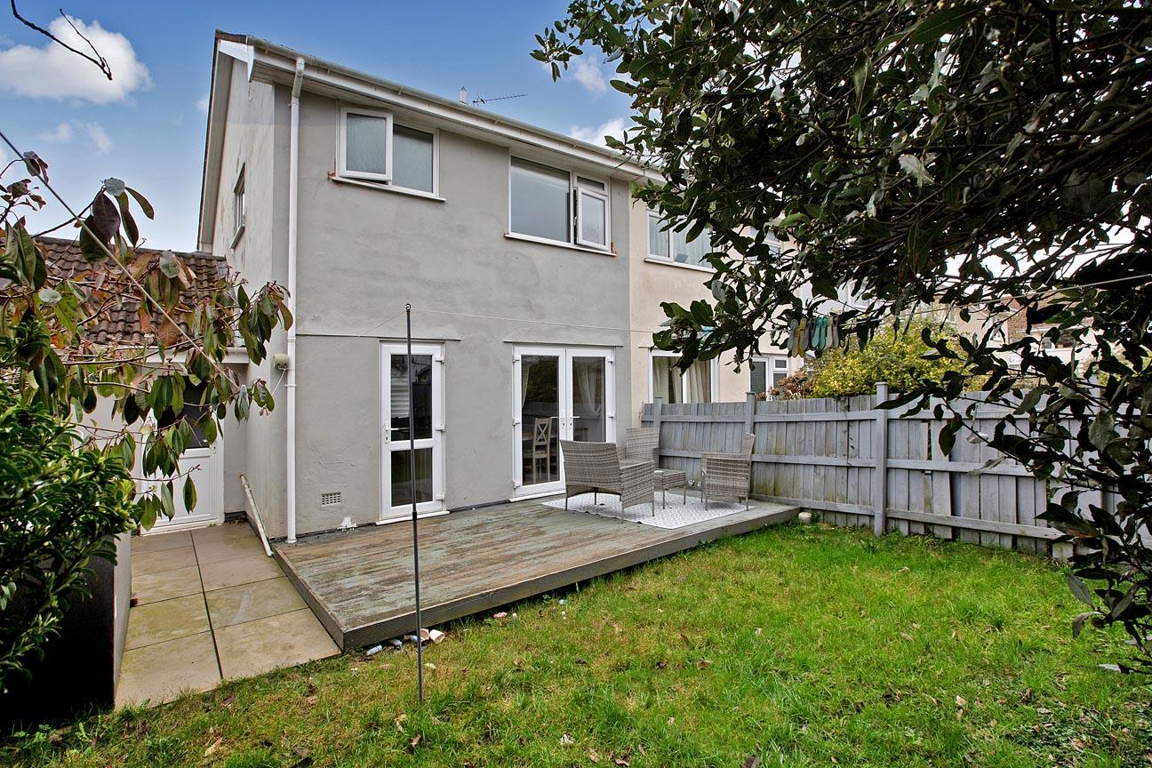 OUTSIDE: To the front of the property is a driveway leading to the garage, path to the front door and a level lawn. The rear garden has a good size decked seating area leading to a level lawn with timber fence surround, established plants and shrubs and rear access to the garage.