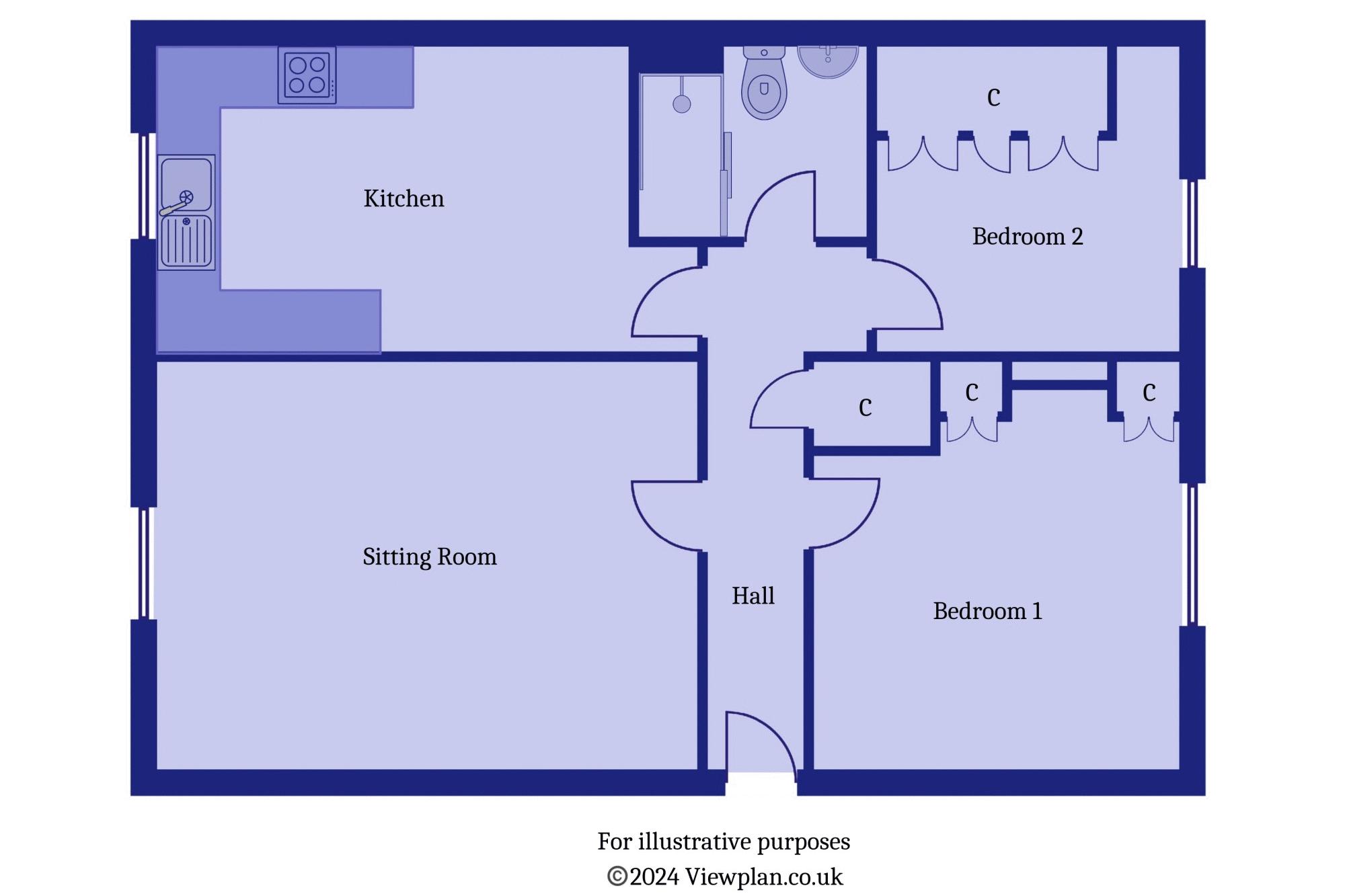 Another double bedroom with uPVC double glazed window overlooking St Augustines Church. Fitted wardrobes to one wall. Fitted kitchen. Wall mounted electric heater. Power points.