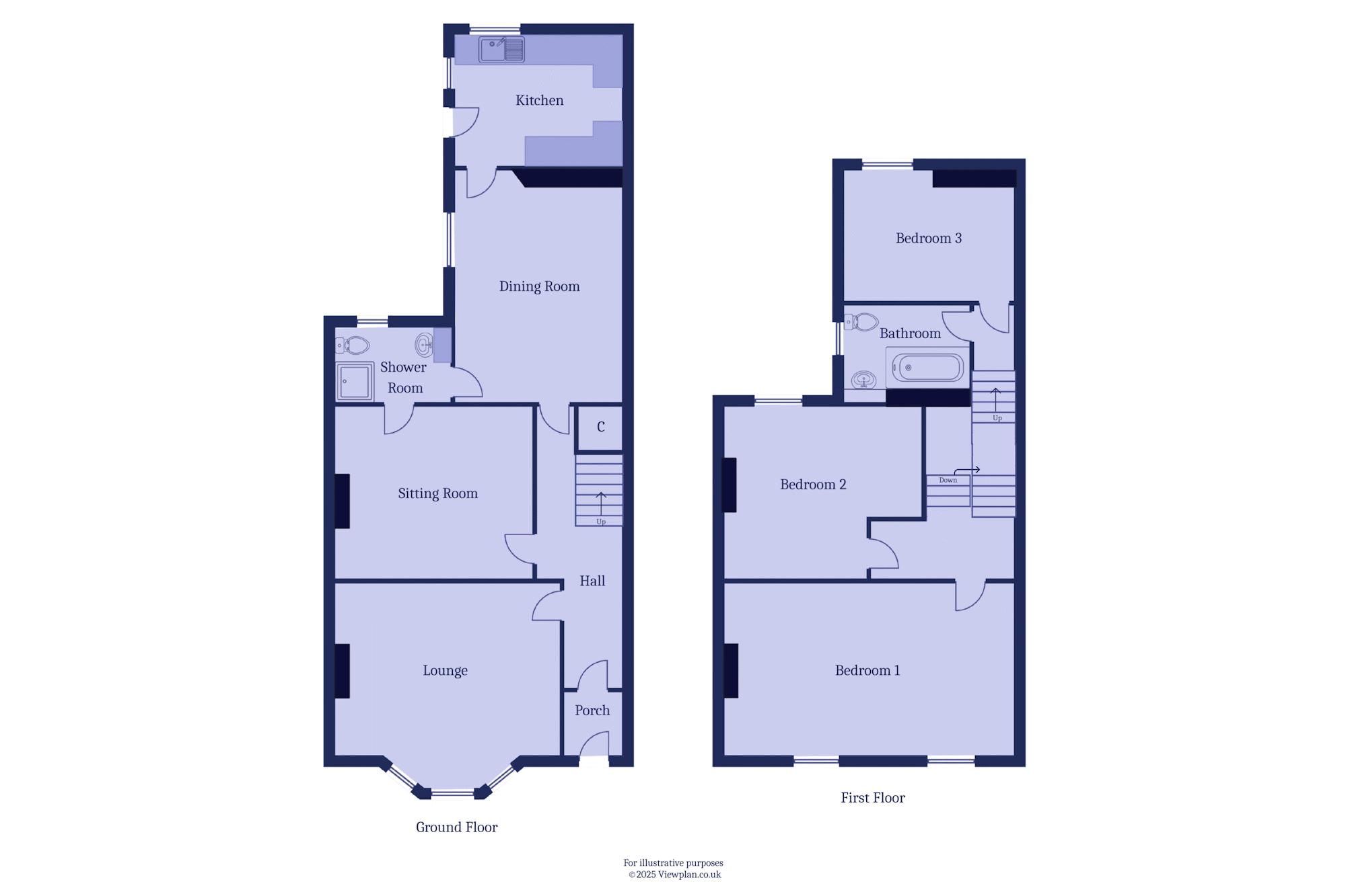 A ground floor shower room, alternatively a large WC. Accessed from the dining room and sitting room. This shower also gives the possibility of having a ground floor bedroom with en-suite. Vinyl floor. Suite comprising a shower cubicle with mixer shower, a WC and a sink. uPVC double glazed window to the rear. Part tiled walls. Extractor fan. Wall mounted electric fan heater.