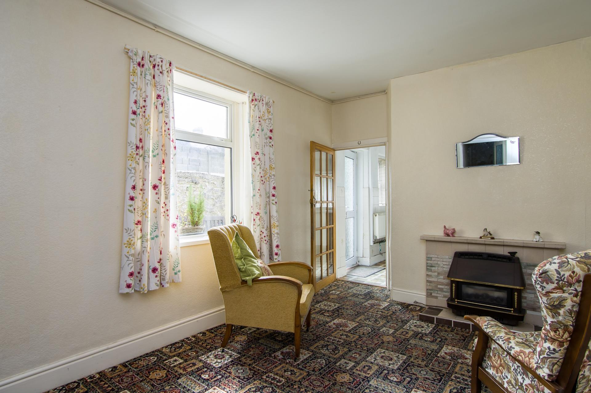 uPVC double glazed panel front door. Vinyl flooring. Original dado rails and cornice. Inner door to the hall.