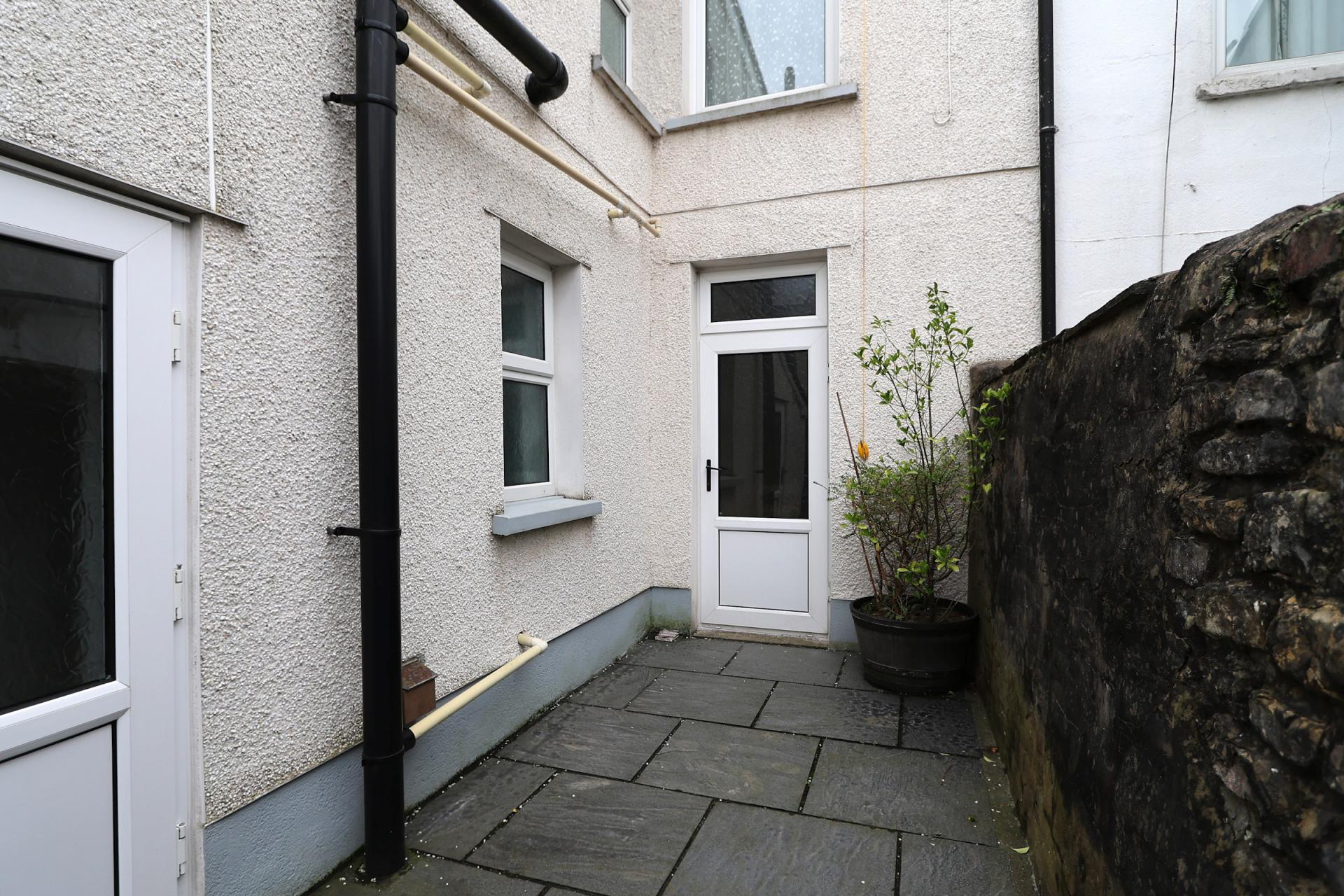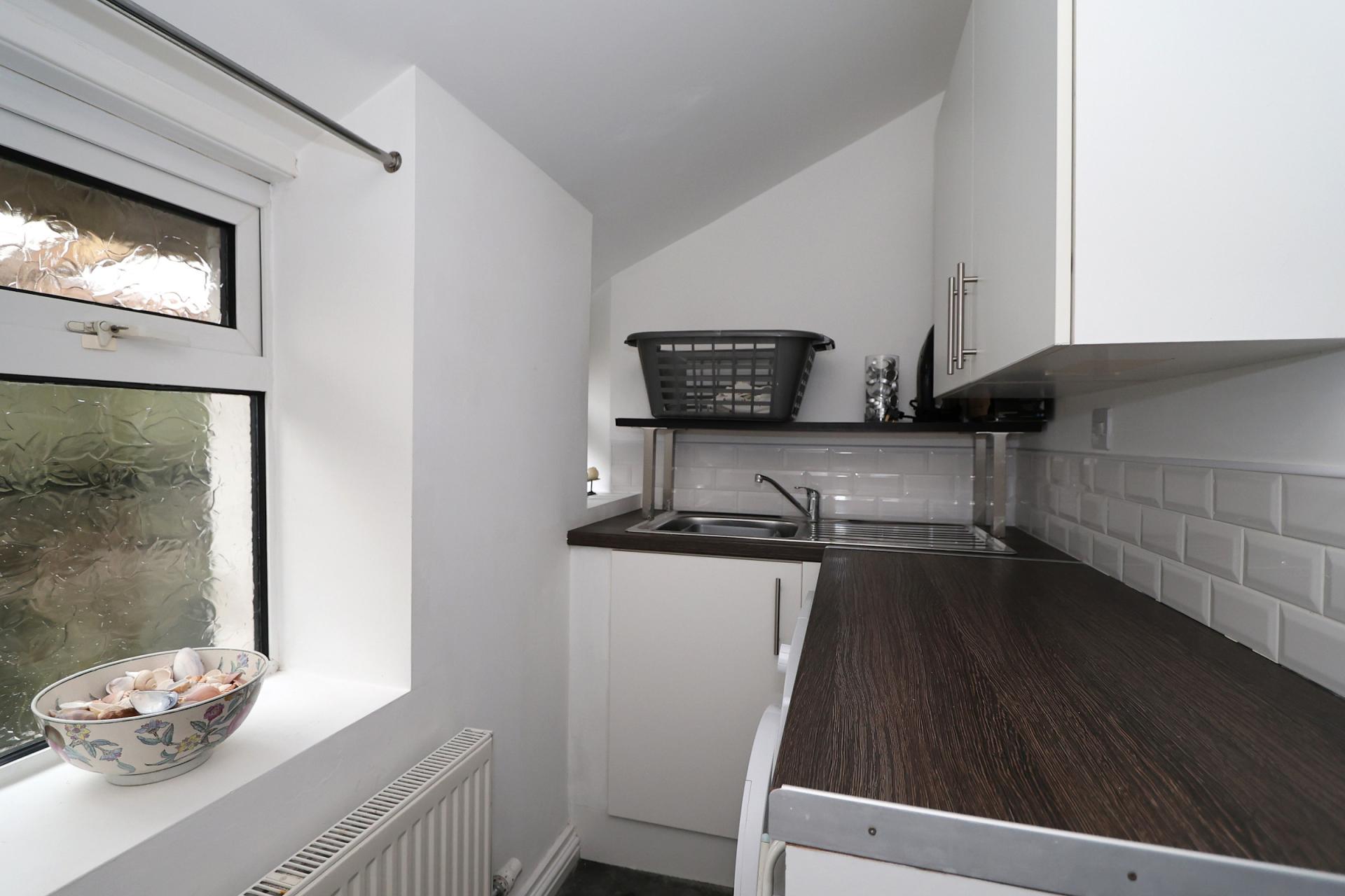 A useful additional space to the rear of the house. Fitted wall units, base units and work surfaces to match the kitchen. Plumbing for washing machine. Single bowl stainless steel sink with drainer. Two uPVC double glazed windows to the rear and a uPVC double glazed door into the garden at the side.. Part tiled walls. Power points. Central heating radiator.