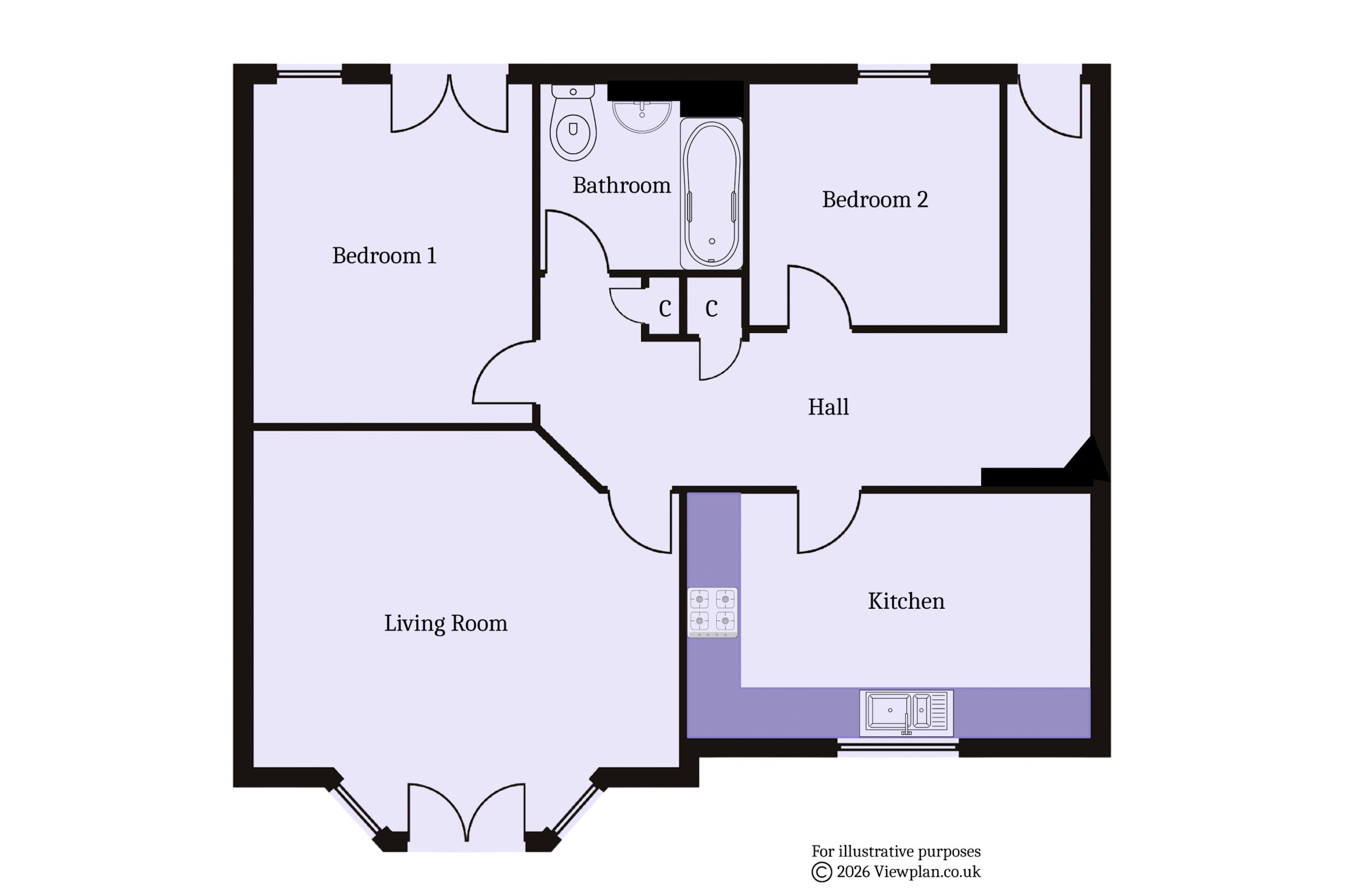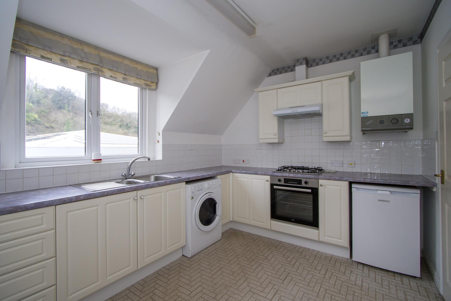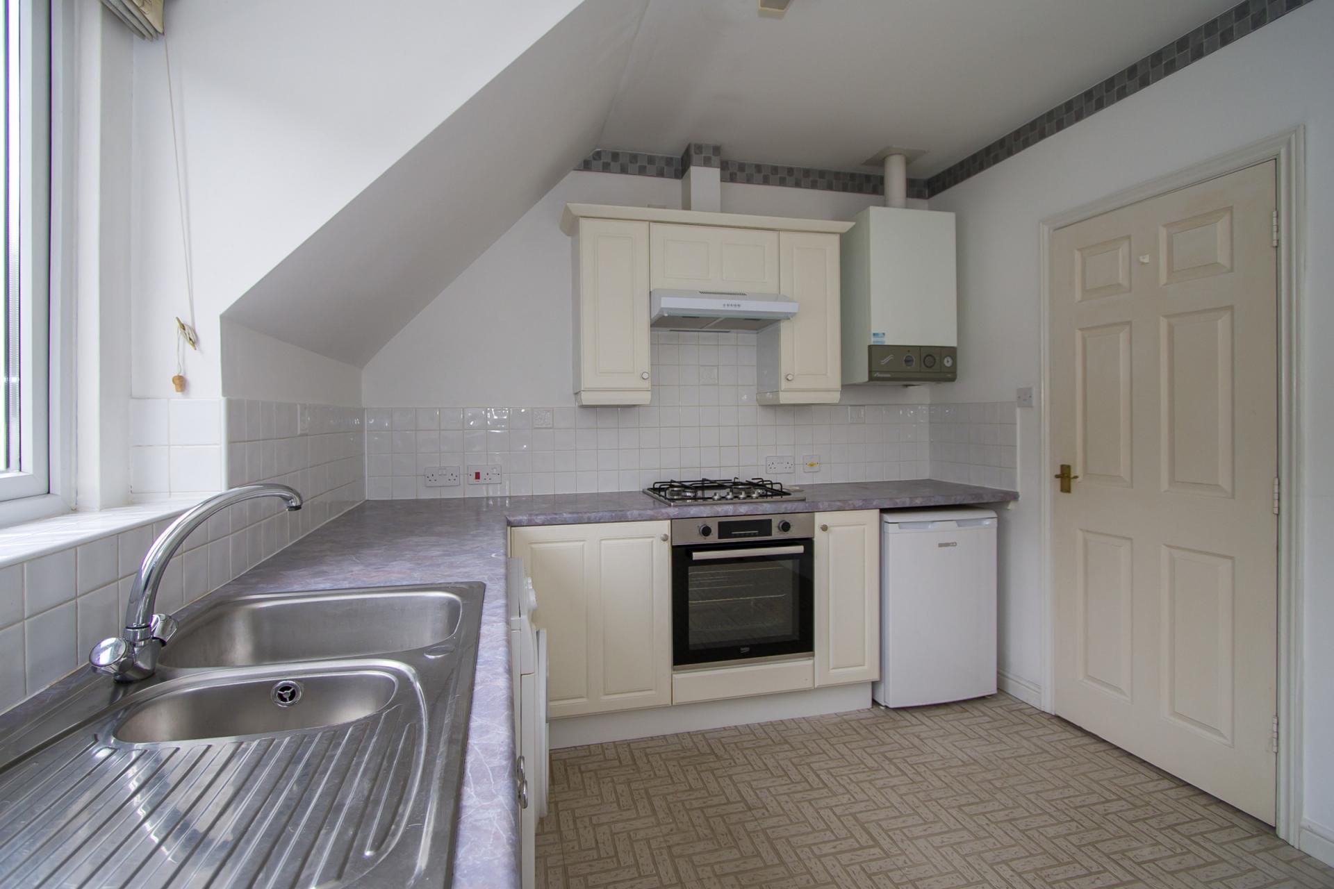 Vinyl flooring and part tiled walls. Fitted kitchen comprising wall units and base units with laminate work surfaces. Integrated appliances including an electric oven, four burner gas hob and extractor hood. Freestanding washer dryer and counter level fridge with freezer compartment. One and a half bowl stainless steel sink with drainer. Wall mounted gas combination boiler. uPVC double glazed window. Power points. Central heating radiator. Space for a table and chairs.