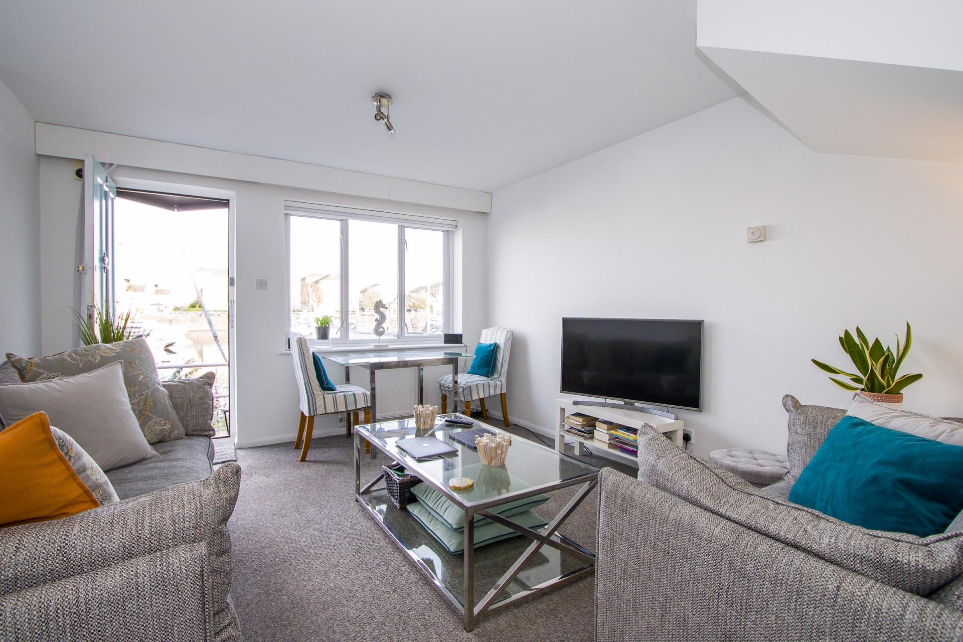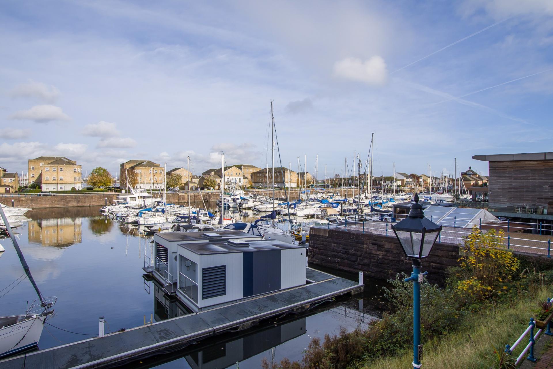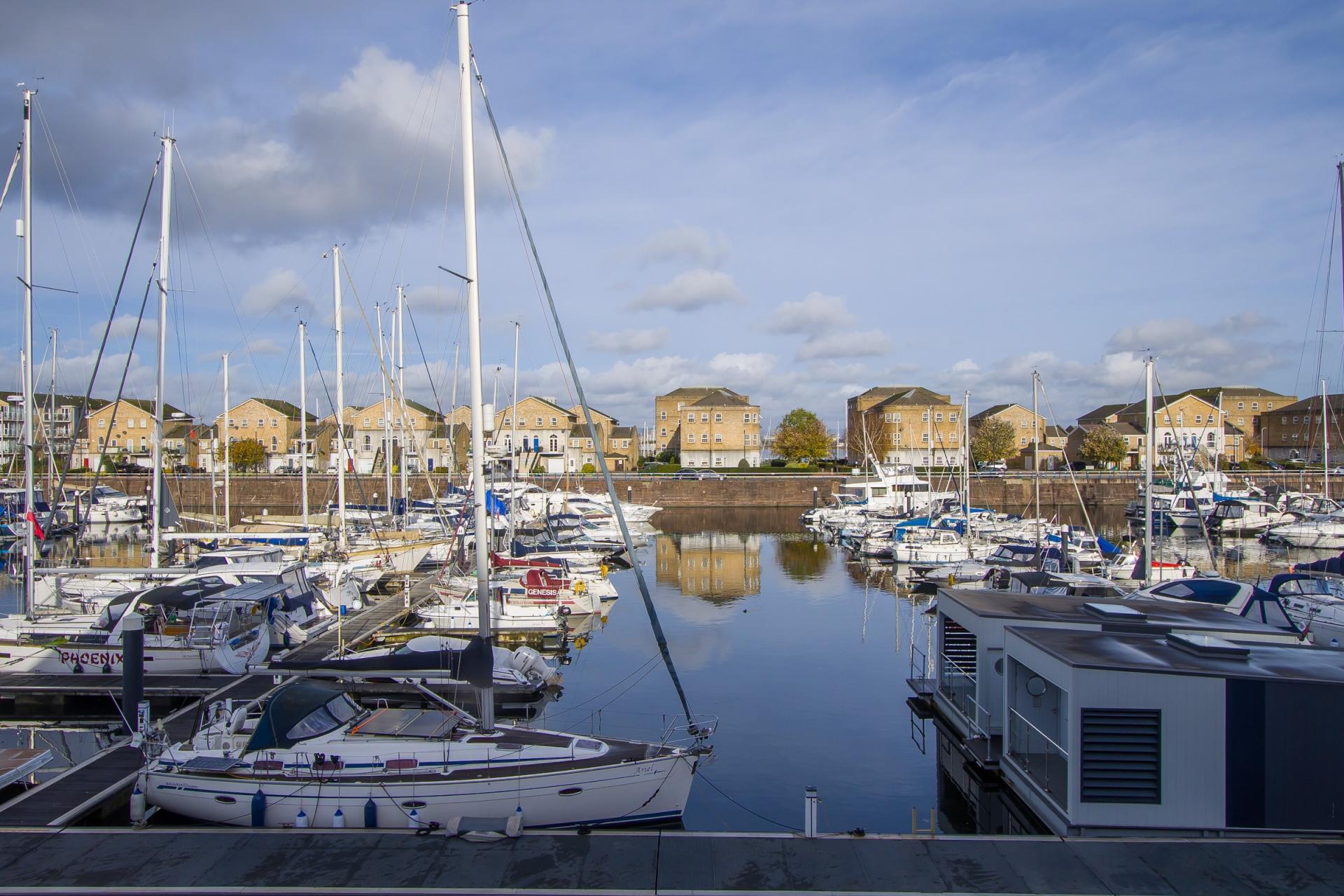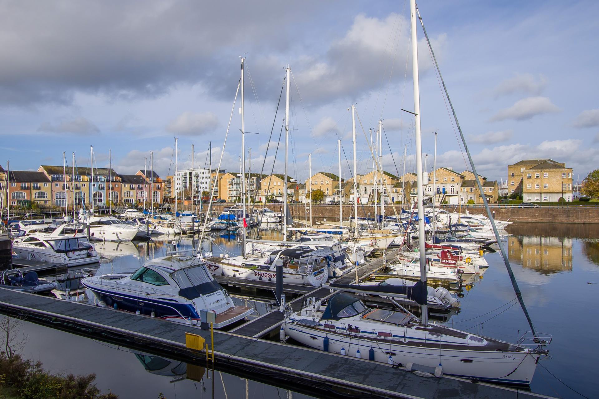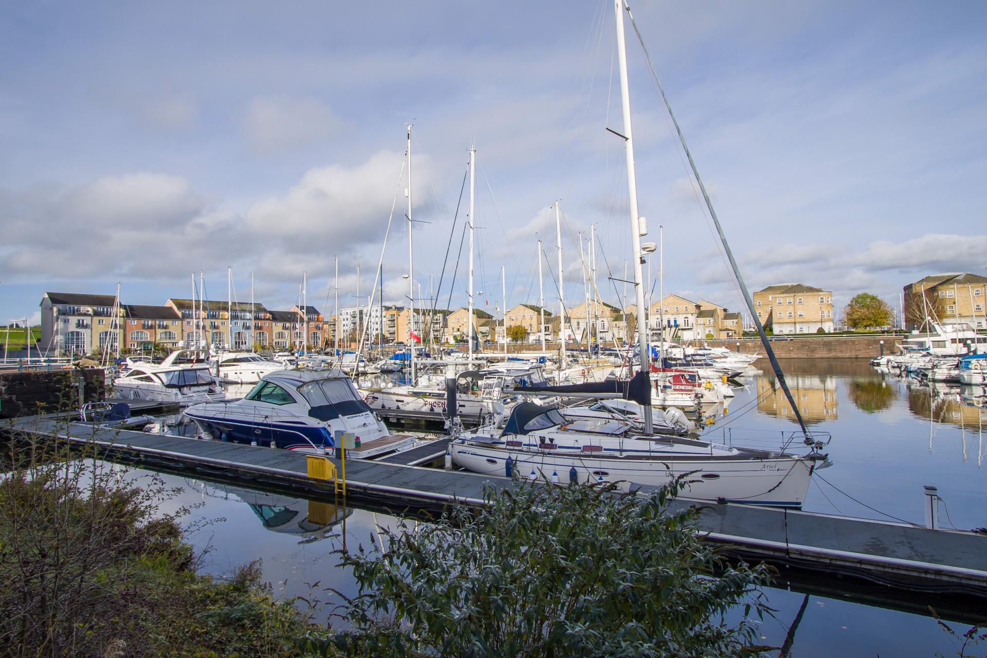 - Water views, backing onto the Inner Basin in Penarth Marina