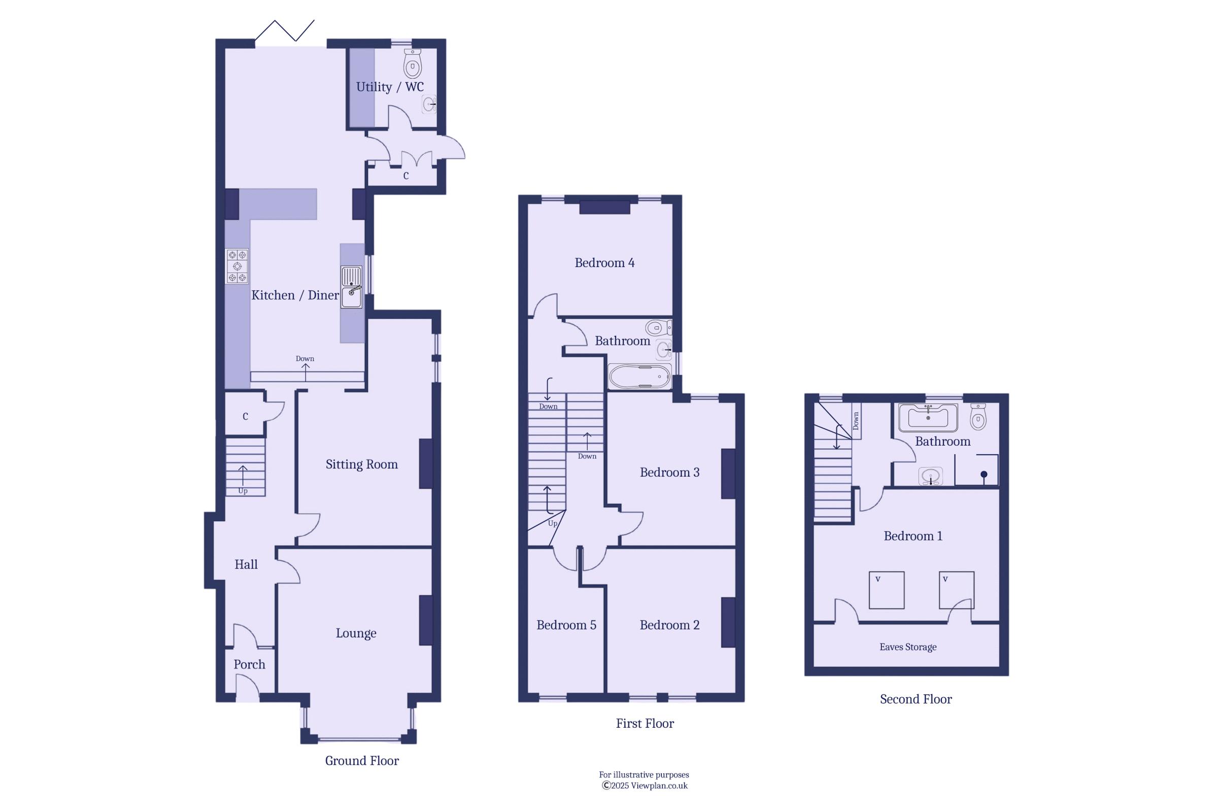 - Five bedrooms (four doubles)