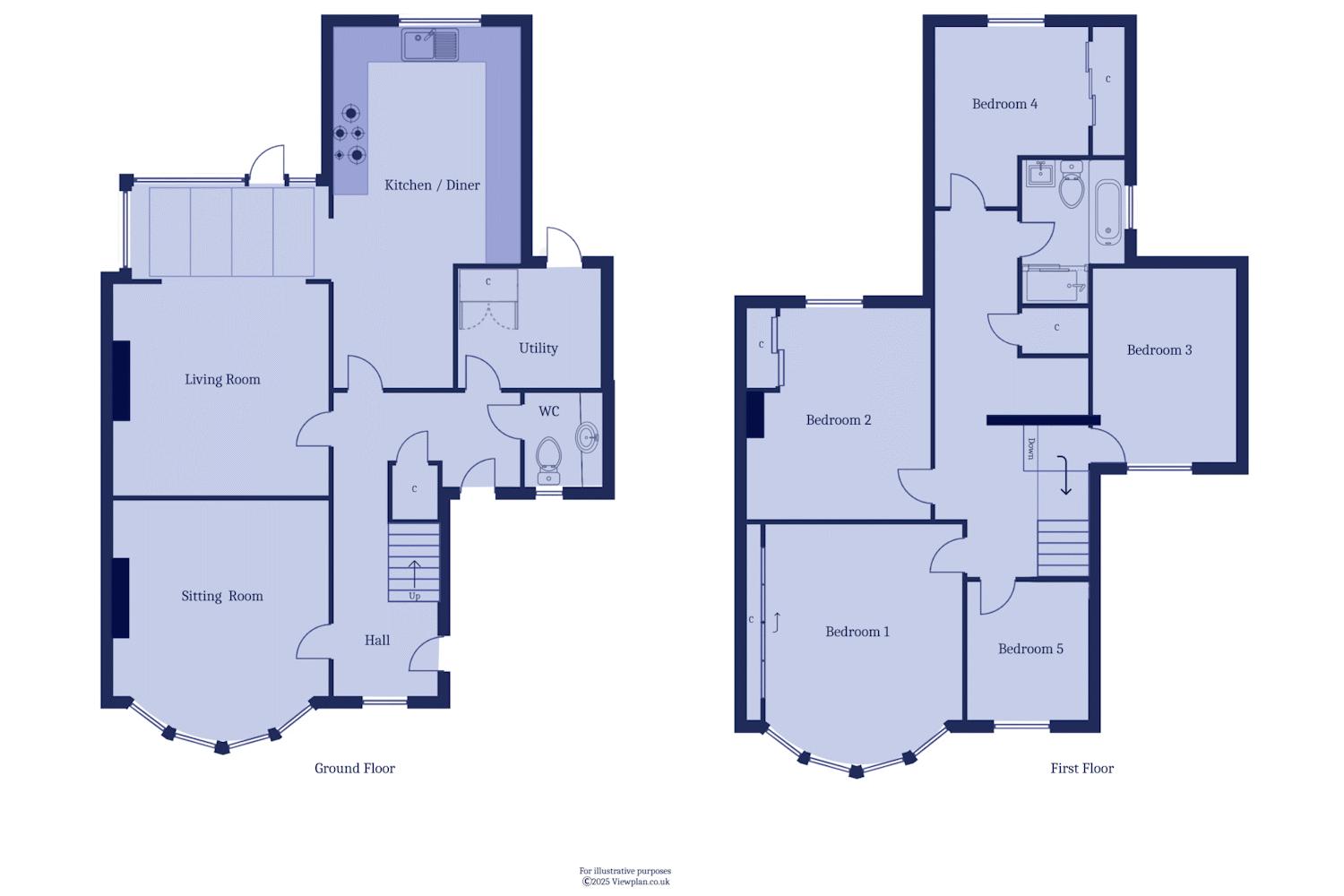 - Five bedrooms