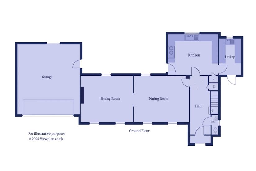 A double garage with electric roller shutter door to the front, door to the side into the garden and a window to the rear. Single bowl stainless steel sink with drainer. Wall mounted gas boiler. Electric light and power points.