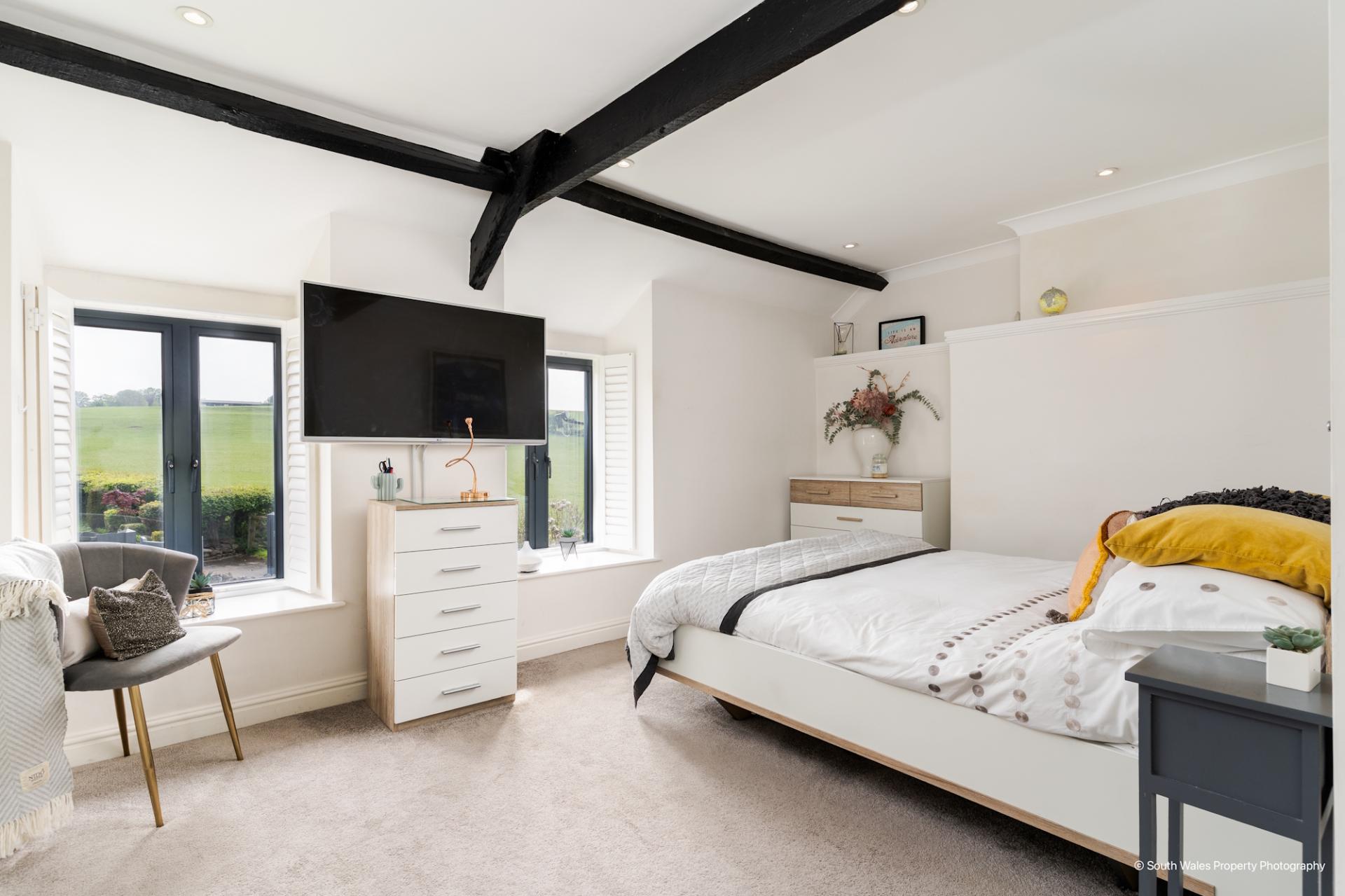 Fitted carpet to the stairs and landing. Four aluminium double glazed windows to the rear overlooking the neighbouring fields - all with fitted Roman blinds. Two central heating radiators. Power points. Doors to all bedrooms and the family bathroom. Attractive original roof beams.