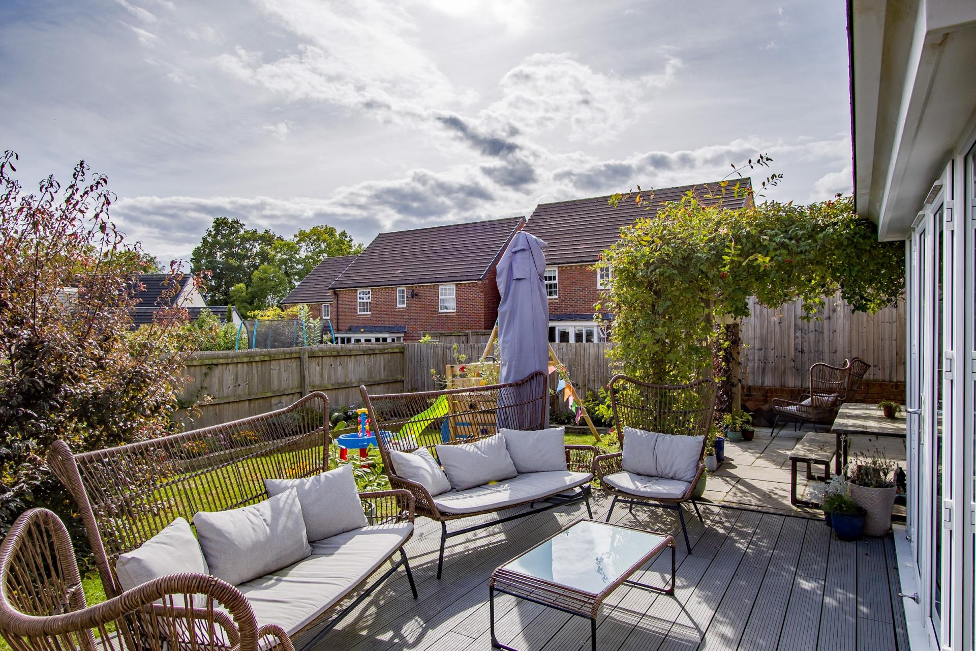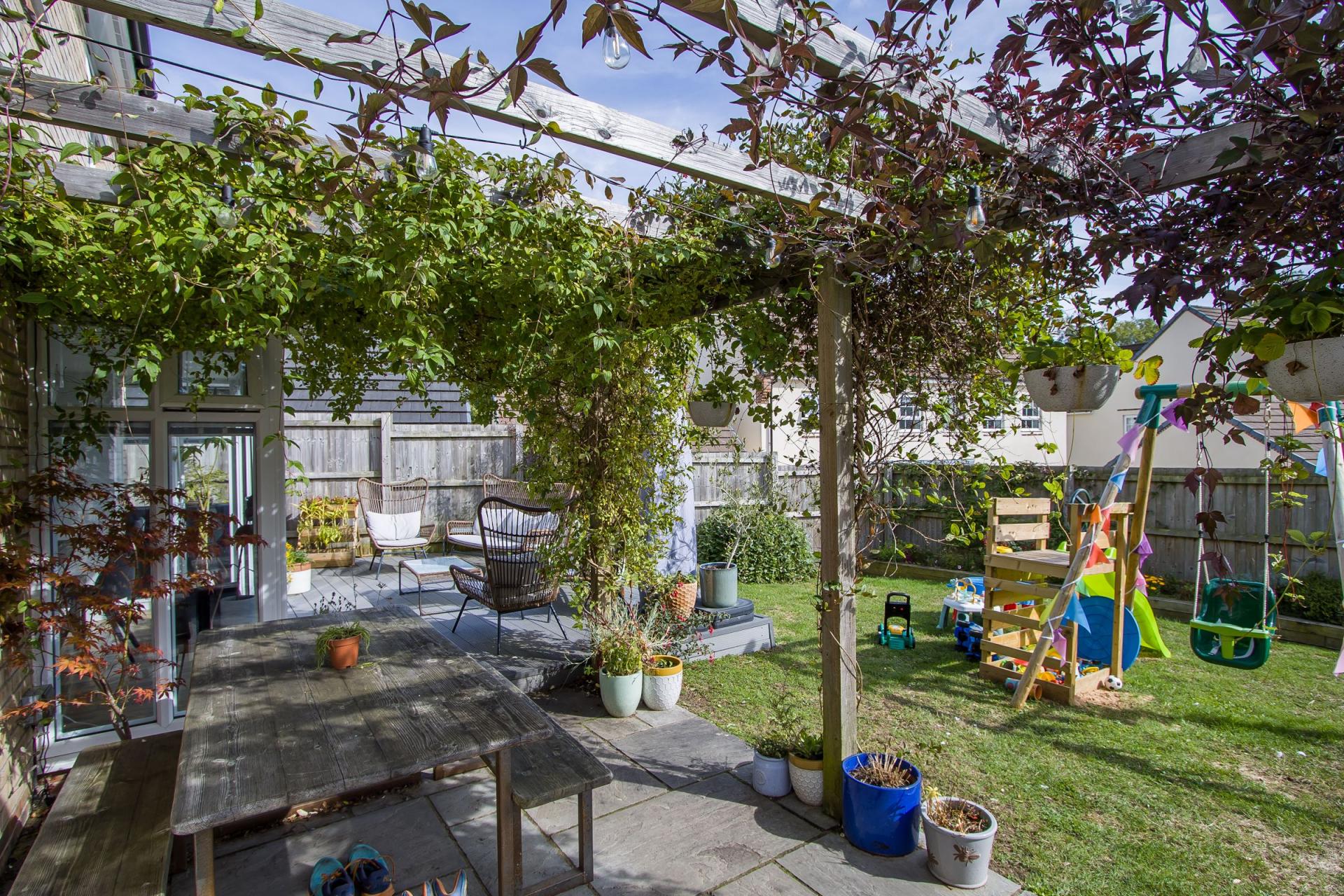 - Enclosed, south facing rear garden