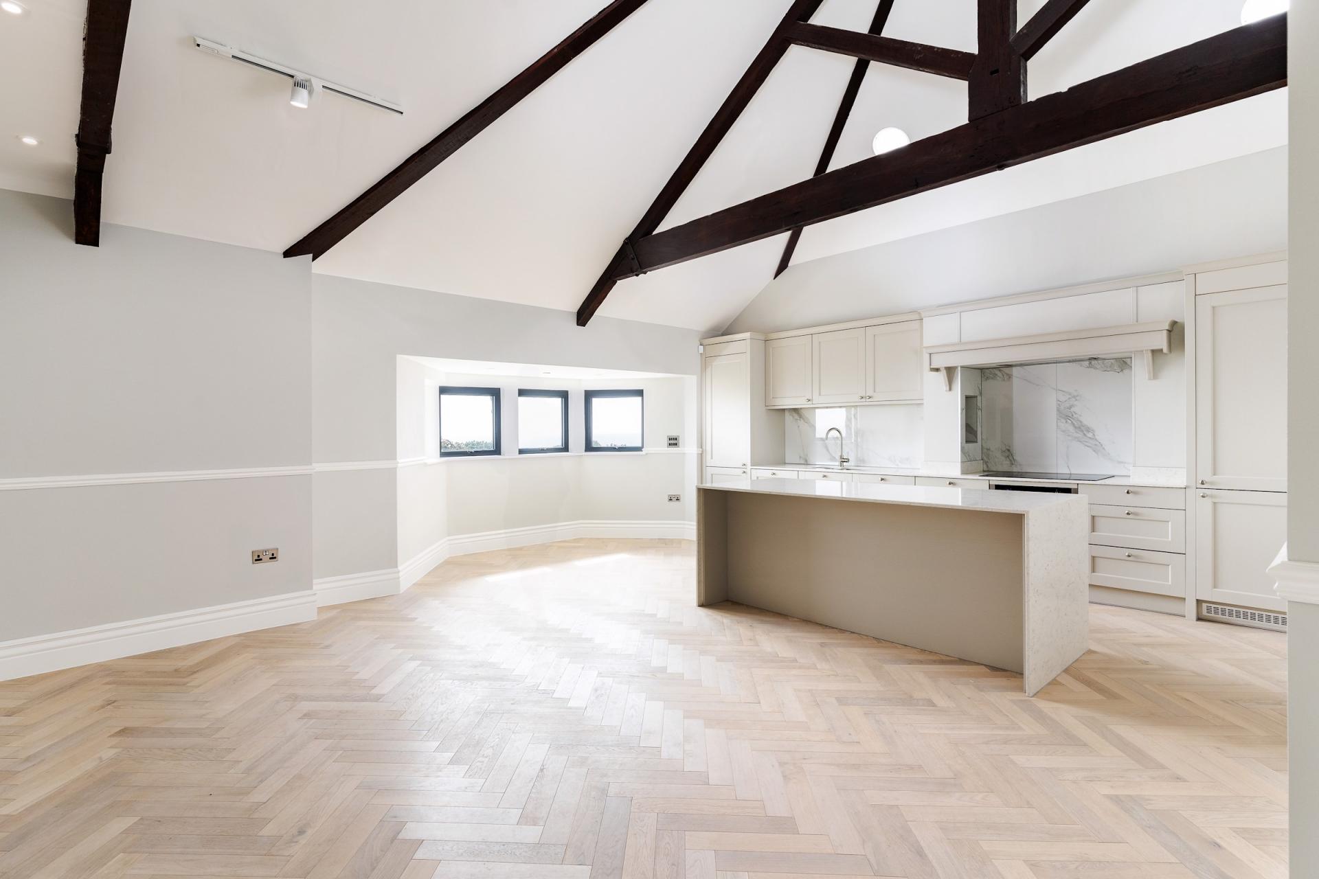 A top floor apartment in the original part of this impressively converted Victorian house, with a lovely open plan kitchen / dining / living space and excellent sea views. Located just a short walk from Penarth town centre, the Esplanade and Alexandra Park. The living accommodation comprises an entrance hall with built-in cupboard and a utility room, the open plan living space, two double bedrooms and two bathrooms. Each apartment in the development has one parking space in the gated parking area and there is a well-proportioned communal garden. EPC: C.