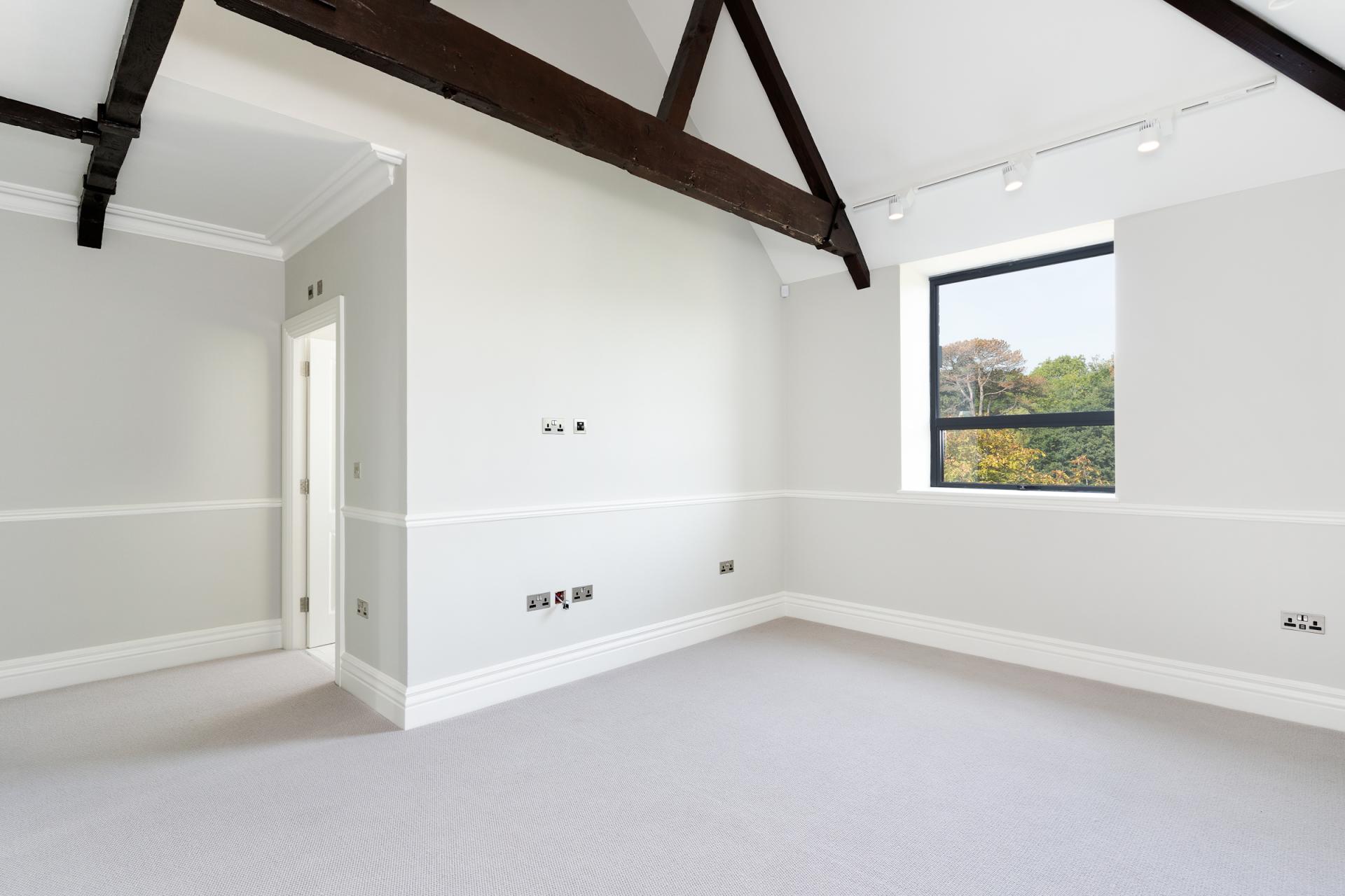 The main bedroom has an aluminium double glazed window to the front and the en-suite shower room has a large walk-shower cubicle, WC and a sink with storage below.