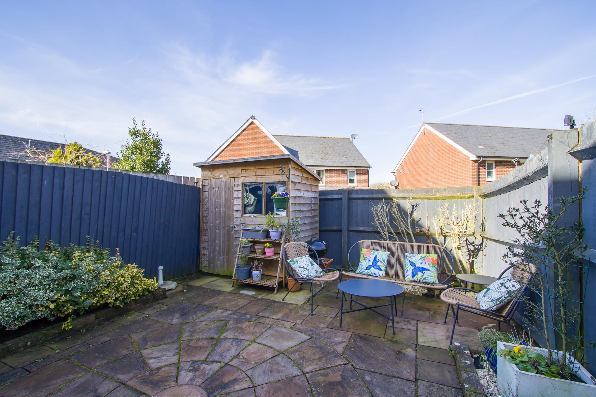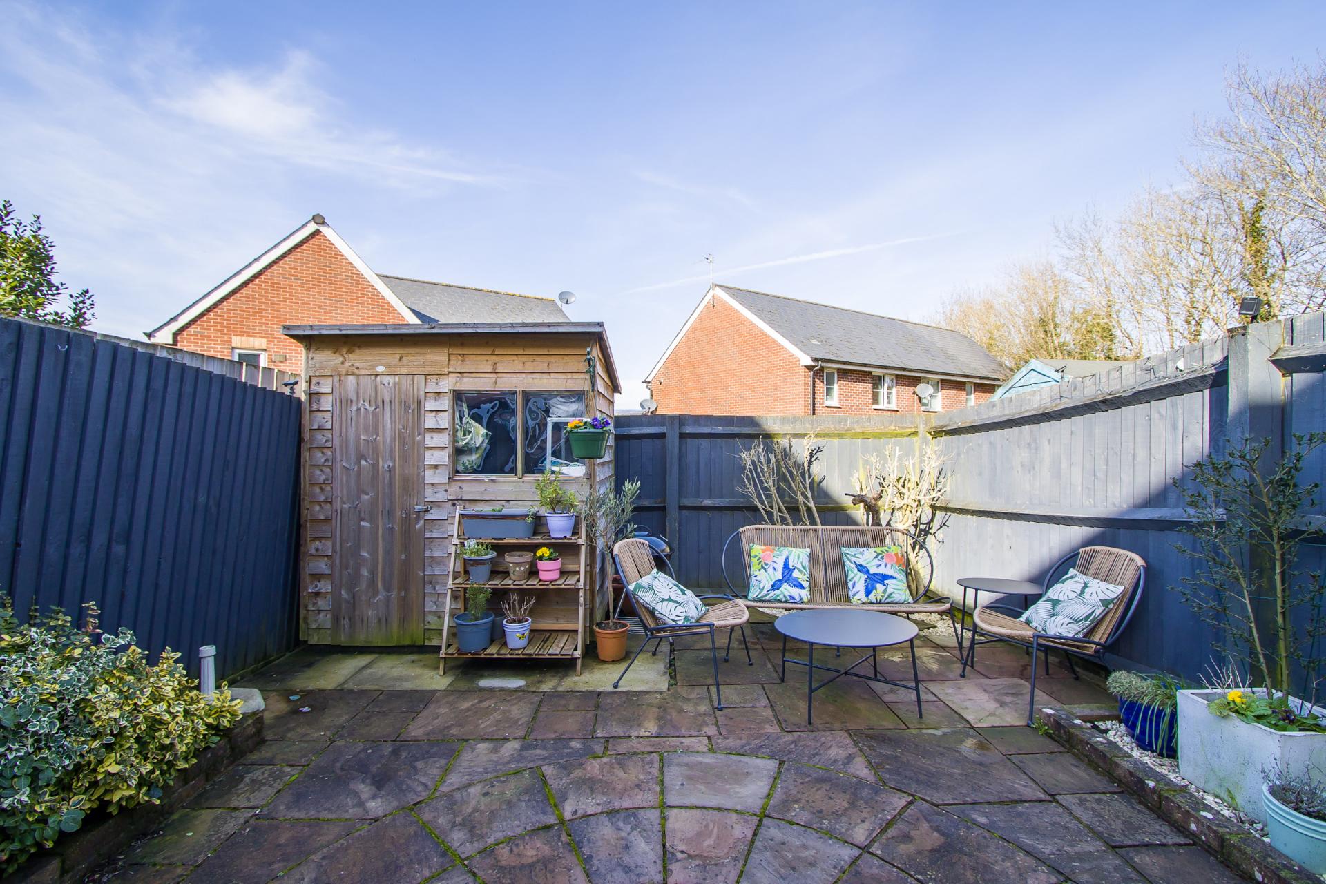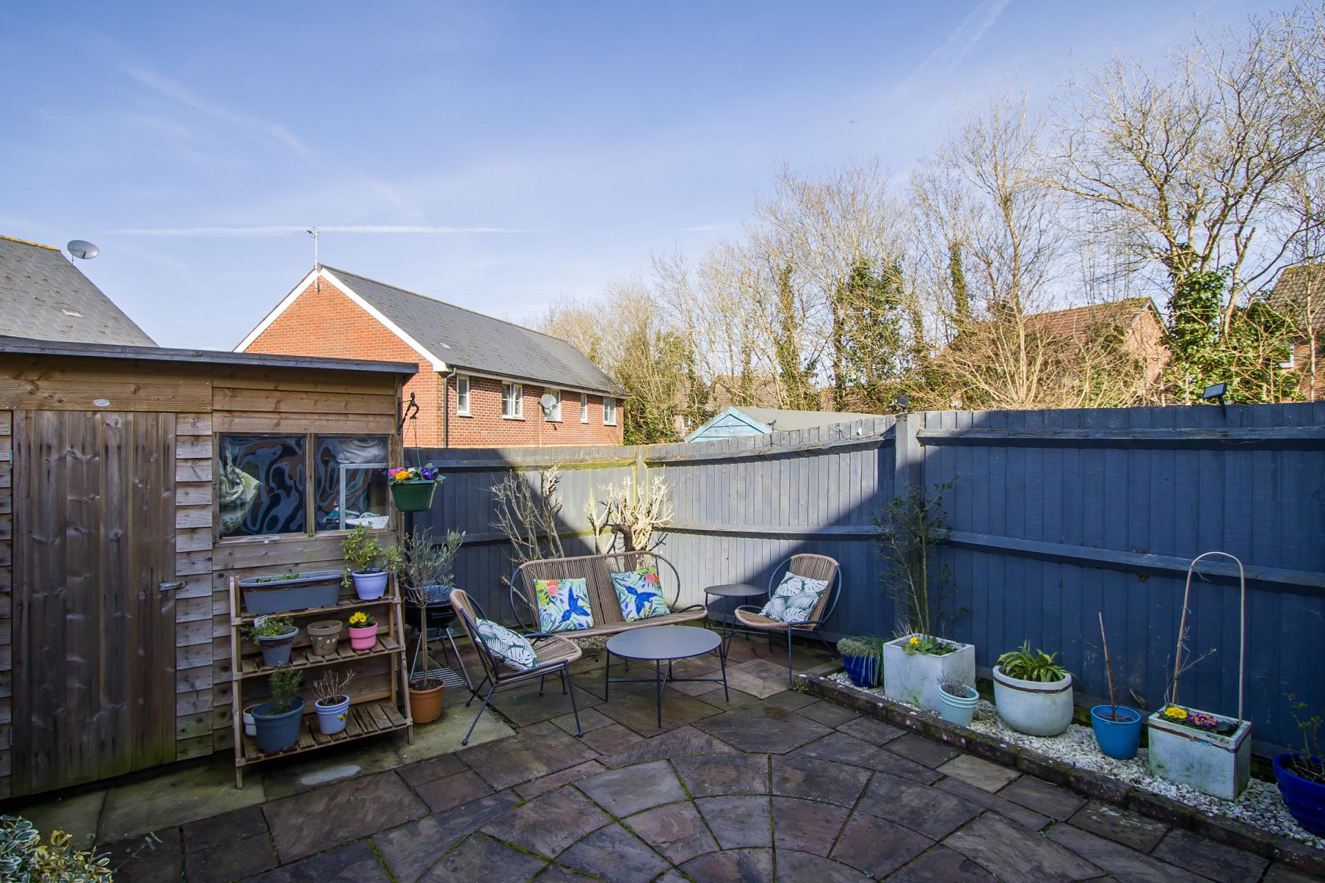 An enclosed rear garden with a westerly aspect, laid to natural stone paving. Timber shed.