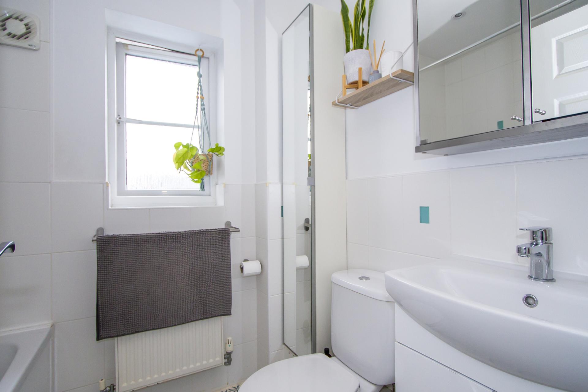 A remodelled WC with space saving WC and sink that frees up very useful space for coats and shoes. Vinyl floor. uPVC double glazed window to the front. Central heating radiator.