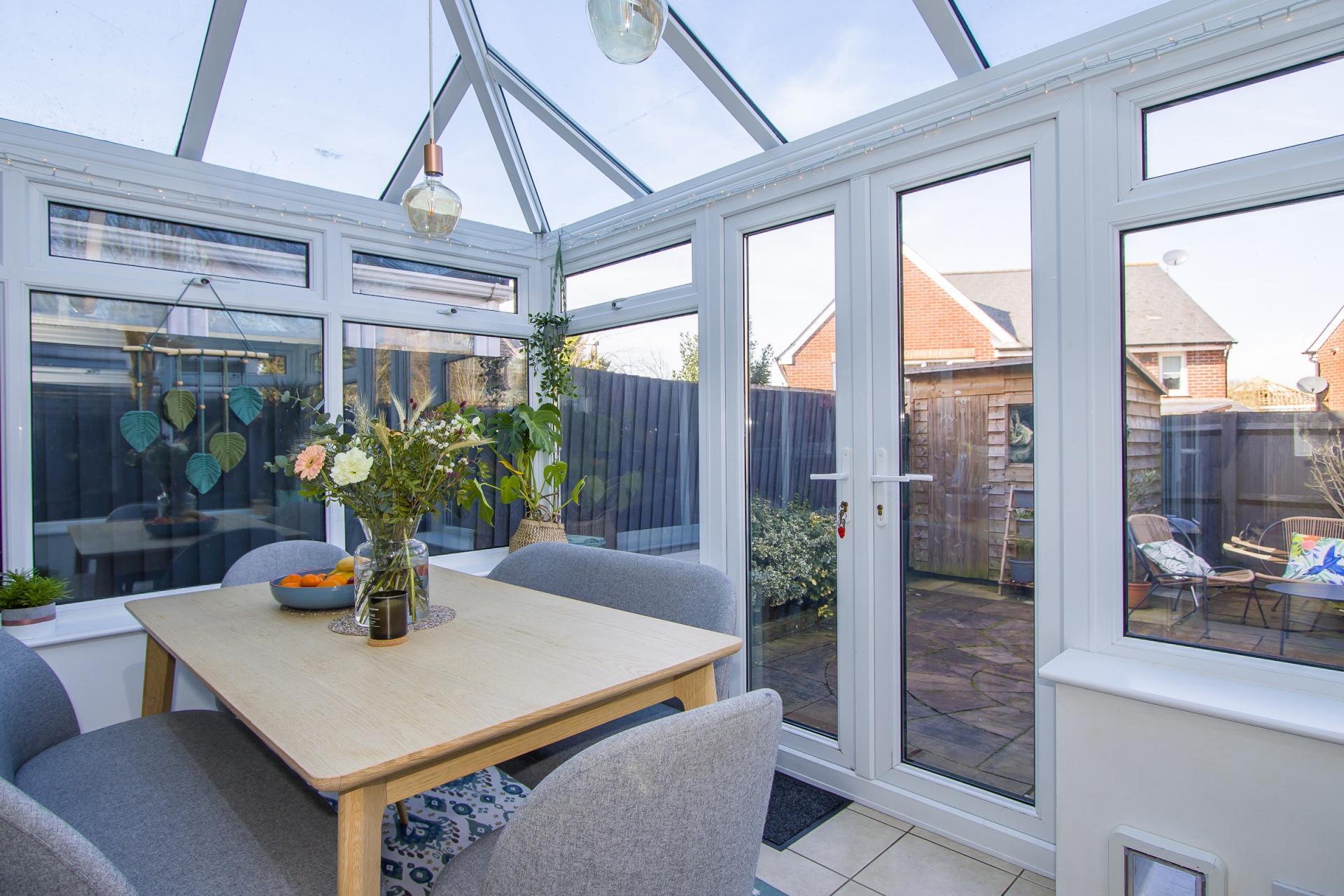 A large conservatory that provides very useful additional dining space on the ground floor, overlooking and giving access into the garden. Tiled floor. Wall mounted electric heater. Power points. uPVC double glazed windows, doors and roof. Electric lighting and power points.