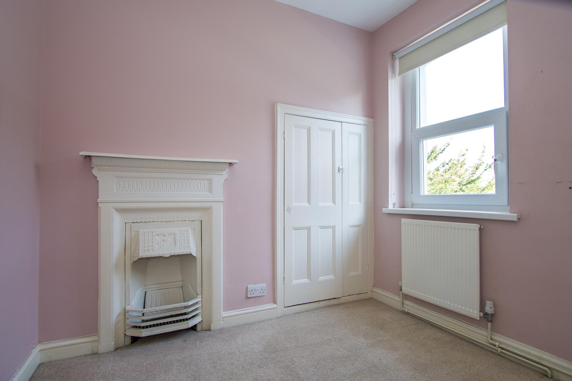 Fitted carpet. Built-in cupboard. uPVC double glazed window to the side. Power points. Original fireplace.