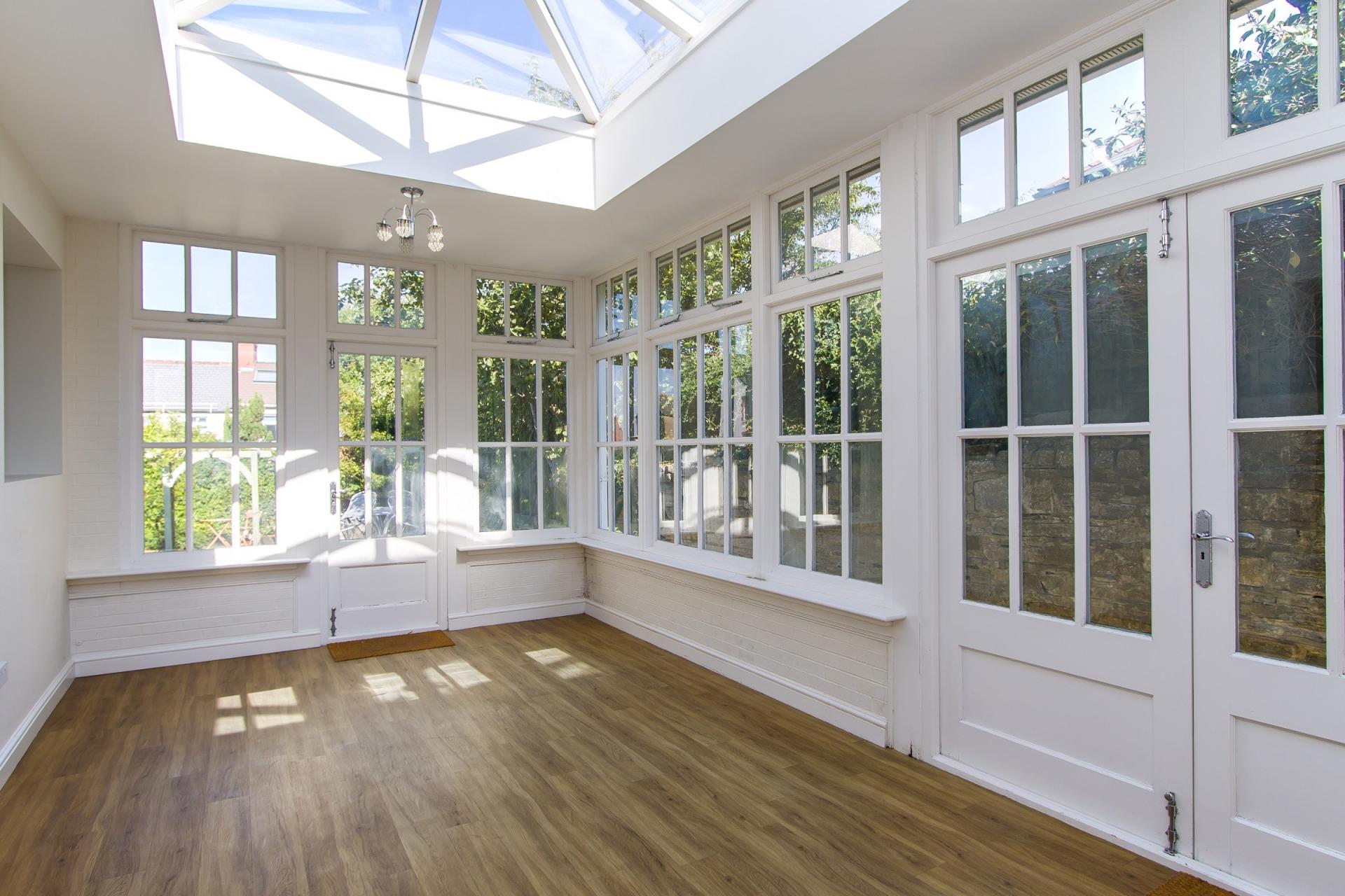 An impressive additional living space off the kitchen and with direct access into the garden. LVT flooring. Wooden double glazed doors and windows to the sides and roof. Power points.