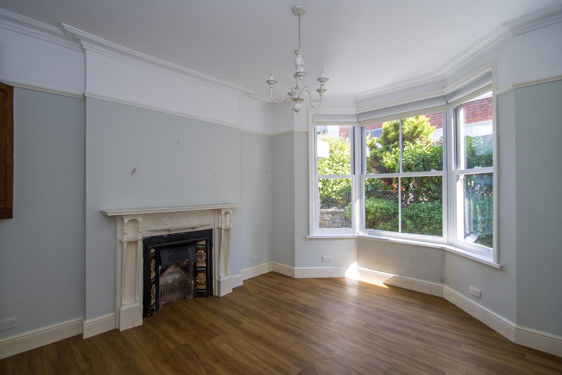 A very pleasant main reception room with uPVC double glazed sash bay window to the front along with the original picture rails and cornice. Wooden fire surround with tiled hearth. Central heating radiator. Power points and TV point. Wood effect LVT flooring continued from the hall.
