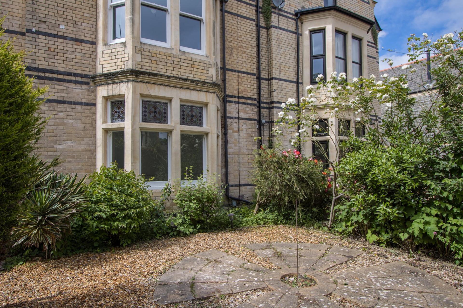 Private to this ground floor flat, a front garden laid to stone chippings and paved patio. Mature planting throughout. Off road parking for two cars to the side.