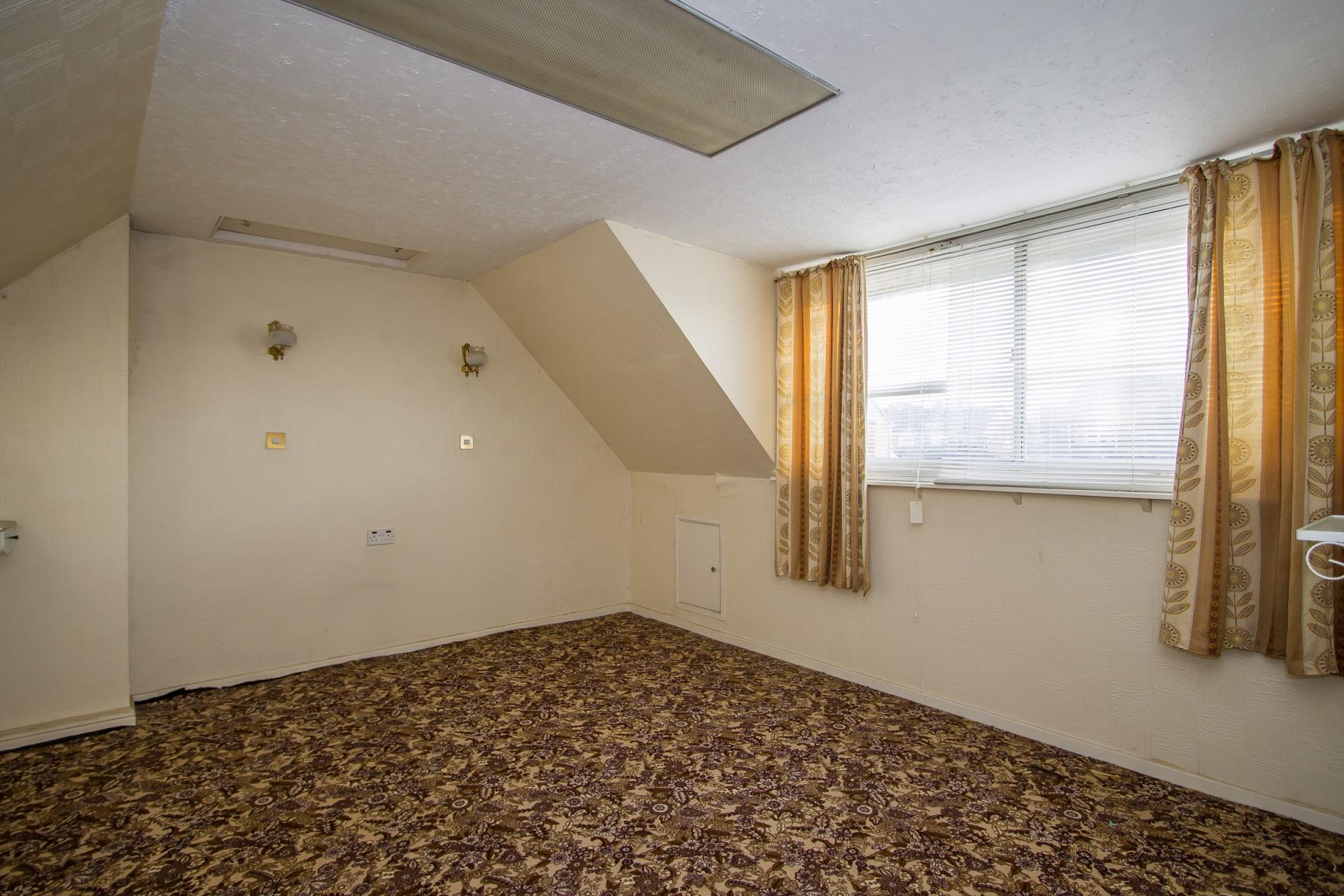 Fitted carpet. Dormer with uPVC double glazed window to the rear. Three fitted wall lights. Power points. Eaves storage.