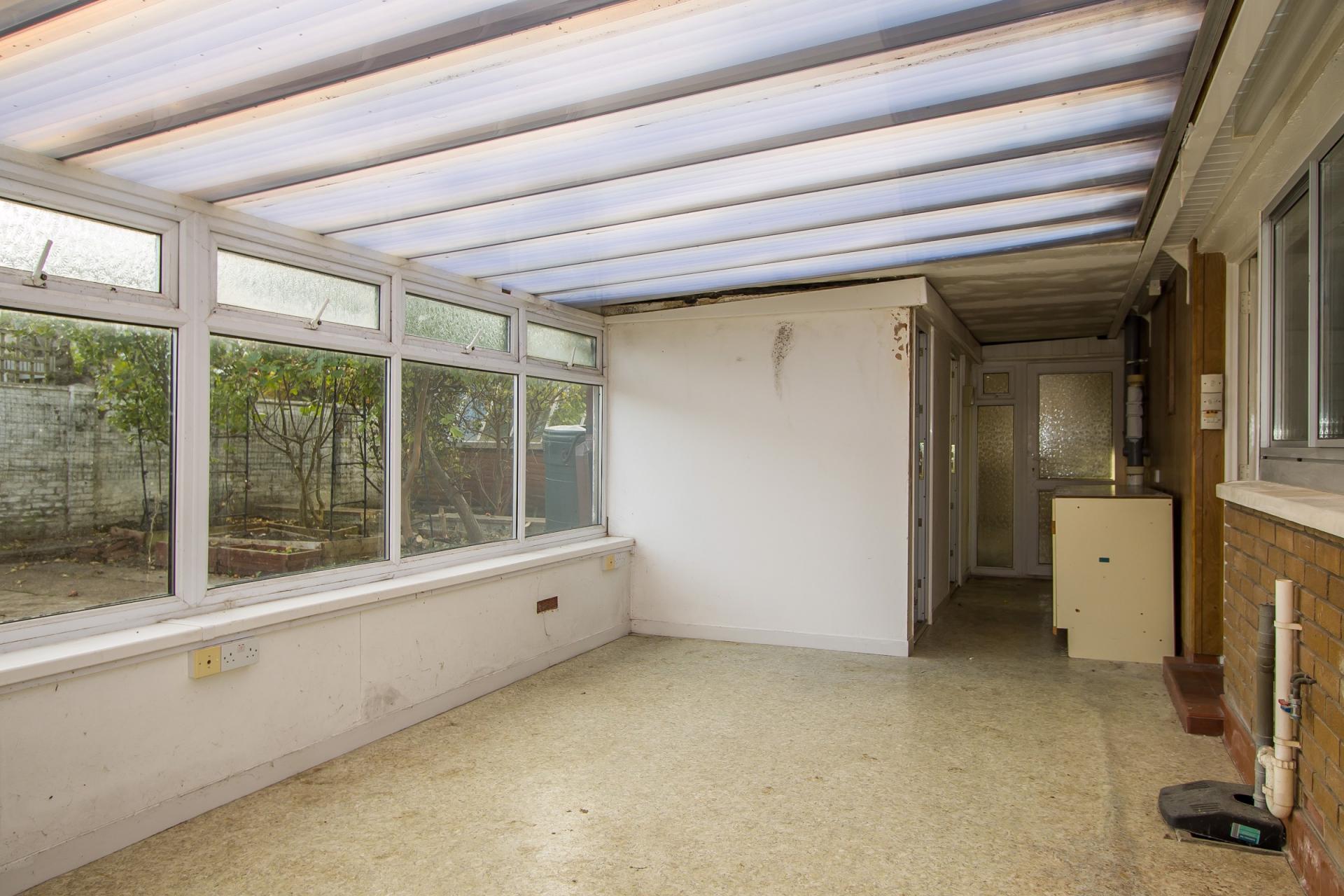 Vinyl flooring. Doors to the WC and utility room. Perspex roof and uPVC double glazed windows to the garden. Power points and TV points. Door to the workshop.