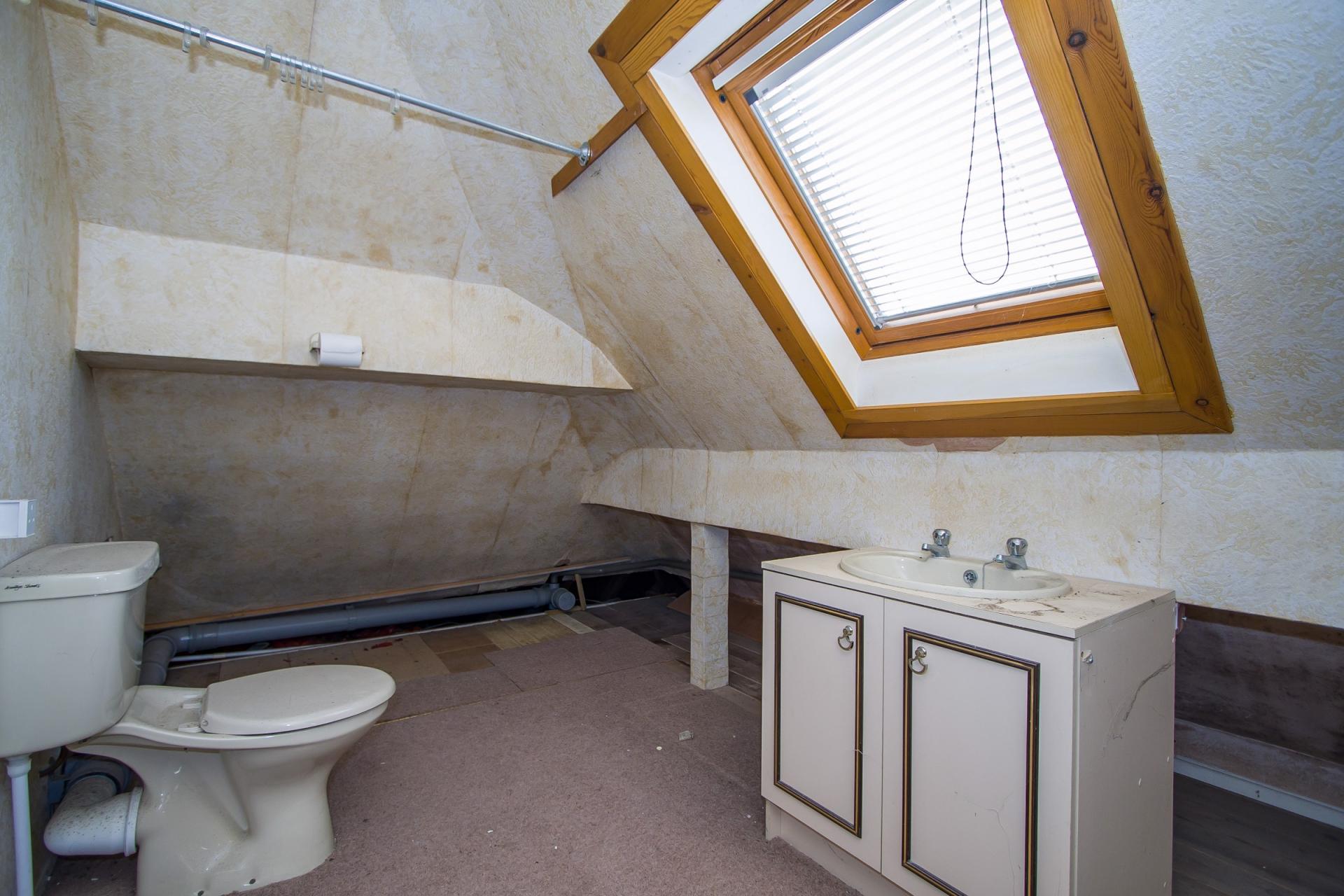 A spacious landing area with access into the first floor loft room and two large loft areas that provide excellent potential for development into two or three formal bedrooms, subject to Building Regulations. A full dormer loft conversion would also be possible subject to Planning Permission, which would create a very large space overall. This landing area is partly covered by a fitted carpet and has a WC and sink. Velux window. Doors to two loft spaces and the main loft room.