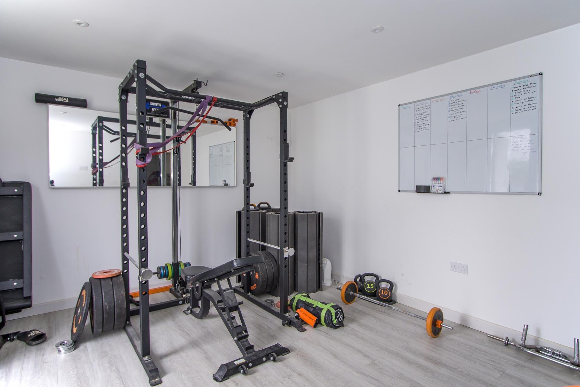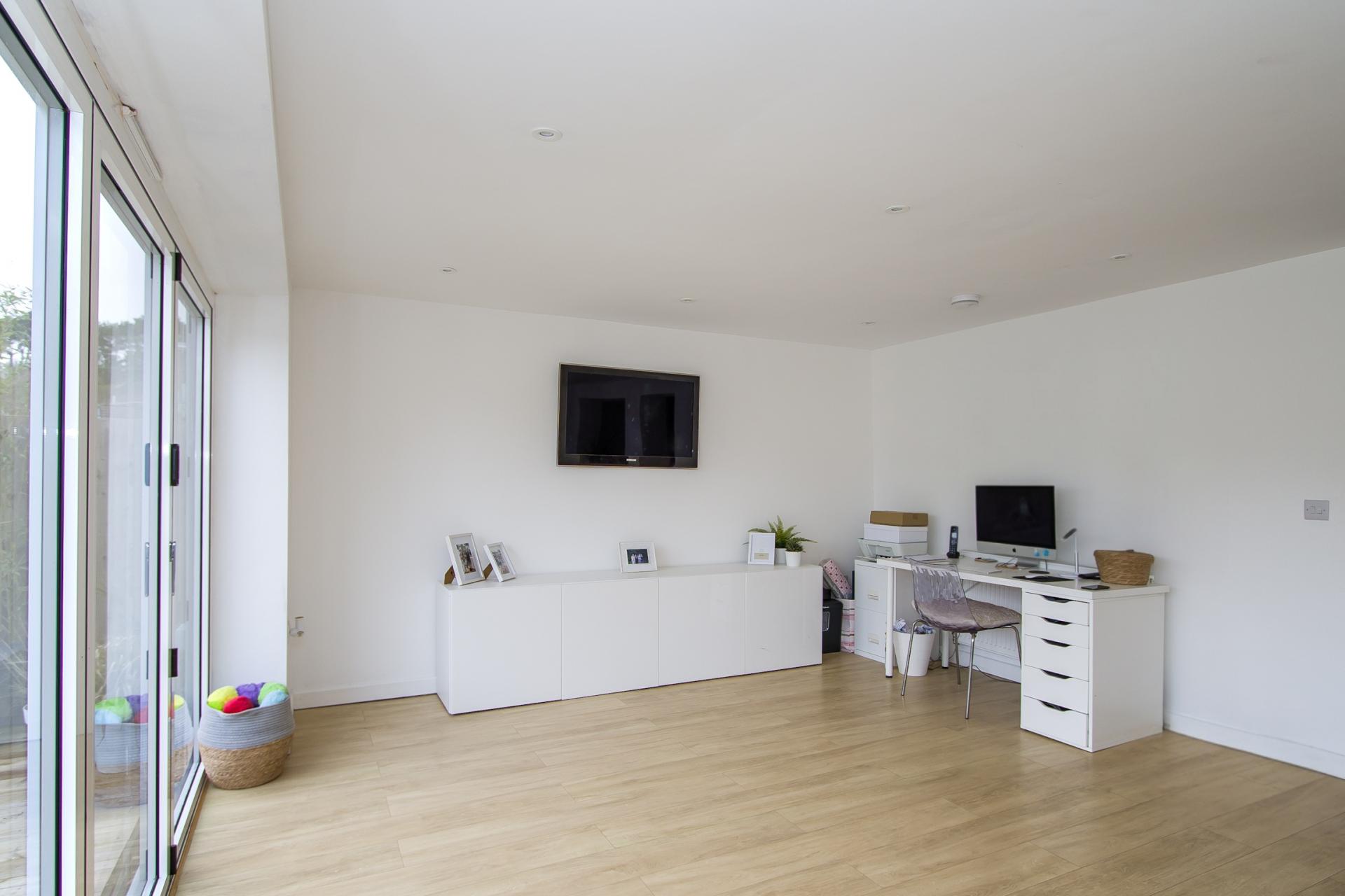 Part of the recently built garden room, this is currently set up as a gym but gives very useful and versatile additional space. LVT flooring. Power points. Recessed lighting. uPVC double glazed doors into the garden. Door to the office.