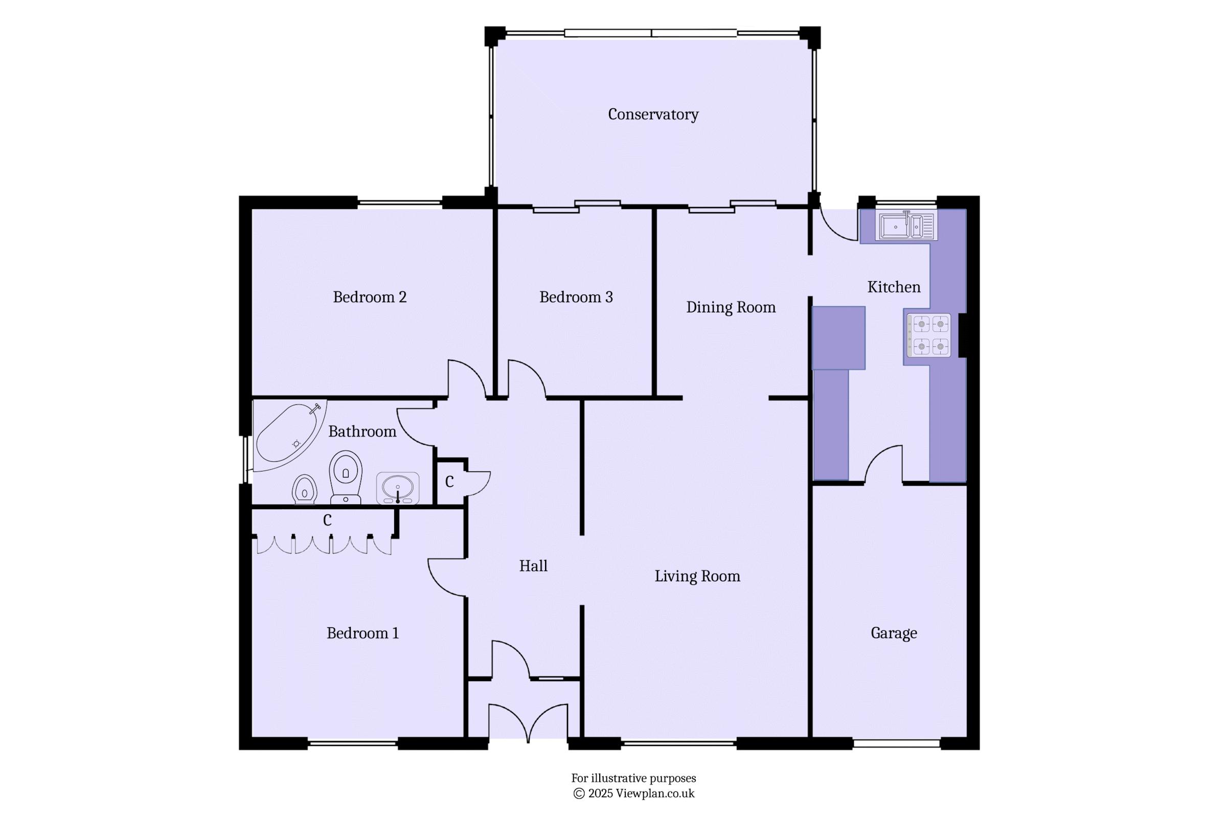 The third double bedroom, again to the rear of the property and this time with uPVC double glazed sliding doors into the conservatory. Fitted carpet. Central heating. Power points. Coved ceiling.