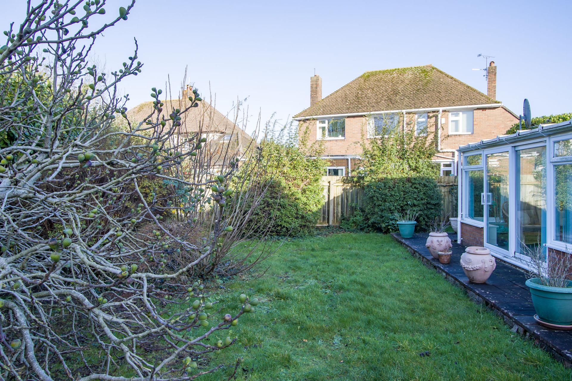A westerly, mature rear garden with lawn and a paved patio. The garden has an impressive fig tree and numerous plants and trees that give excellent colour and privacy. Original stone wall to one side. Garden shed.