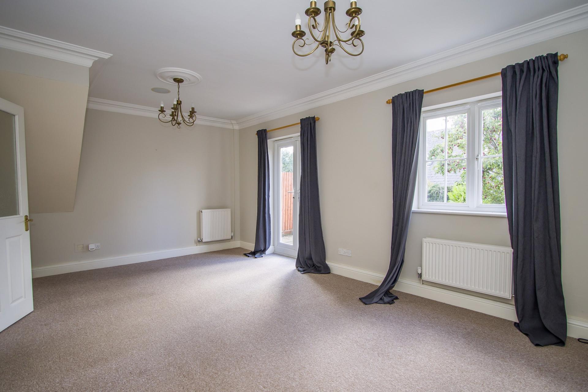 A spacious living room across the full width of the back of the house. Fitted carpet. uPVC double glazed double doors and windows to the rear, overlooking and giving access into the garden. Stone fireplace with gas fire. Two central heating radiators. Power points and TV point. Coved ceiling.